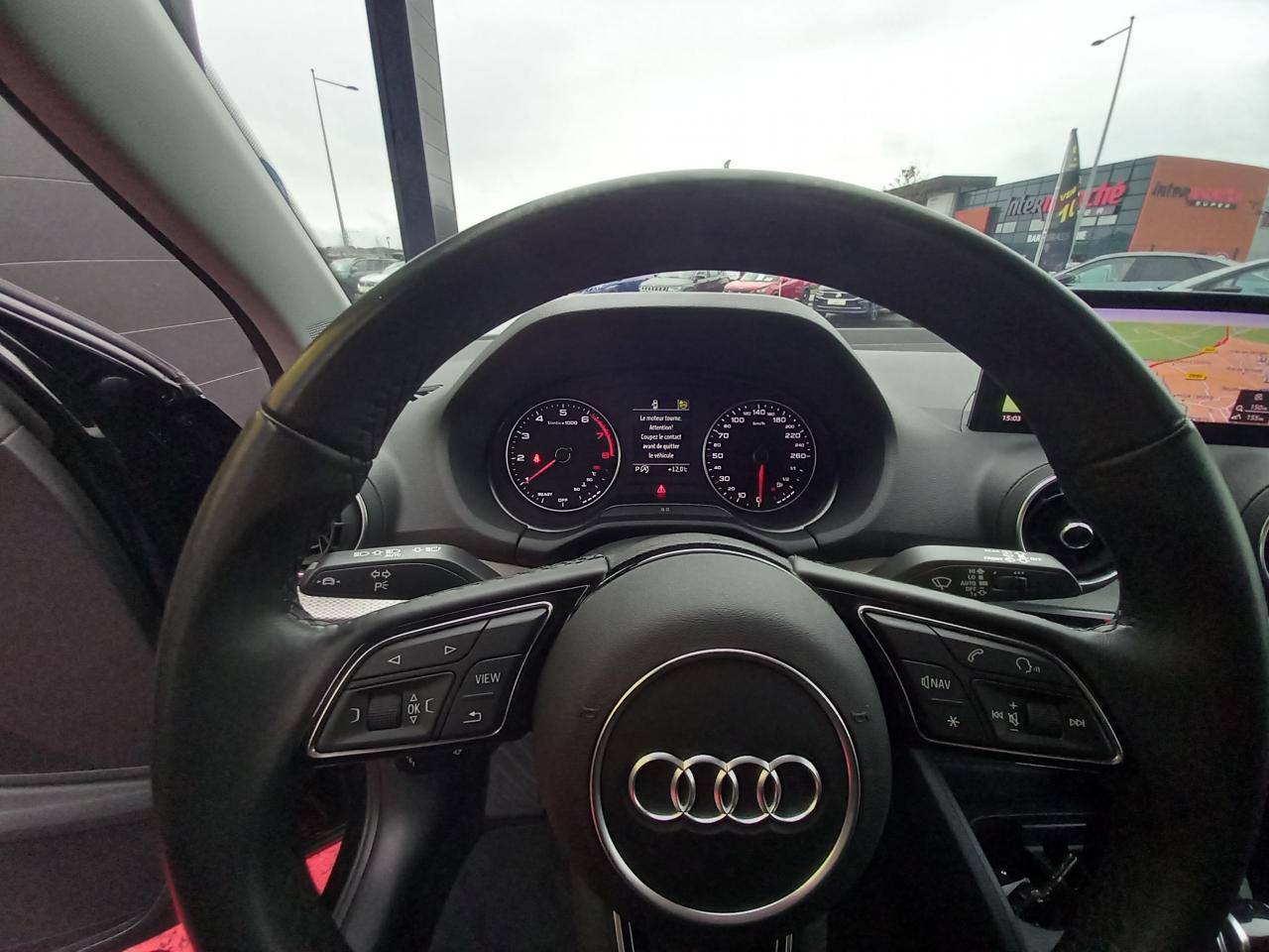 Accoudoir central avant ConfortAffichage du contrôle de la pression des pneumatiquesAirbags latéraux à l'avant et système d'airbags de têteApplications décoratives en aluminium brossé matAssistant de feux de routeAudi connect sécurité et assistance en ligneAudi Drive SelectAudi Hold AssistAudi Music InterfaceAudi phone box avec charge du téléphone par inductionAudi pre sense frontAudi sound system : 10 haut-parleurs incluant un haut-parleur central et un subwoofer ; amplificateur à 6 canaux avec une puissance totale de 180 wattsAvertissement de sortie de voieBlade en Argent MagnesiumCâbles de recharge pour téléphone portable, compatibles iPhone et AndroidCiel de pavillon en tissu noirClé confortClimatisation automatique confort 2 zonesDésactivation de l'airbag du passager avantDétecteur d'occupation des sièges avantDétecteur de pluie et allumage automatique des projecteursDirection progressiveDossier de banquette arrière rabattable en deux parties 40:60 ou entièrementFeux arrière à LEDInscription “S line” sur les ailes avantJantes en aluminium, 5 branches design dynamique, contrastées gris, 7,0J x 18, avec pneus 215/50 R18Lève-vitres électriques à l'avant et à l'arrièreMoulures de seuils avec insert en aluminium et emblème S, éclairéesPack aluminium intérieurPack Assistance StationnementPack ConfortPack ConnectivityPack Eclairage d'ambiancePack Intérieur SportPare-brise avec bandeau pare-soleil grisPeinture intégralePhares Matrix LED avec clignotants dynamiques à l’arrièreRéception radio numérique, réception des signaux DAB, DAB+ et DMB AudioRégulateur et limiteur de vitesseRétroviseurs extérieurs couleur carrosserieSécurité enfant électriqueSet de réparation pour pneus avec compresseur 12 volts et produit de colmatage pour les pneus, vitesse maximale 80 km/hSièges sports à l’avant en tissu IndexSystème d'information du conducteur avec écran couleurTapis de sol AV et ARTriangle de présignalisation et trousse de secoursVitres athermiquesVolant Sport S line en cuir style 3 branches avec multifonction avec emblème S (poignées de volant en cuir perforé)