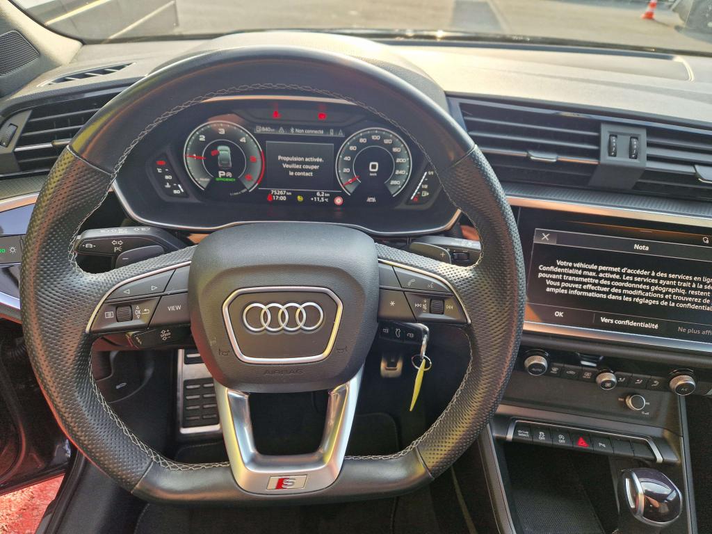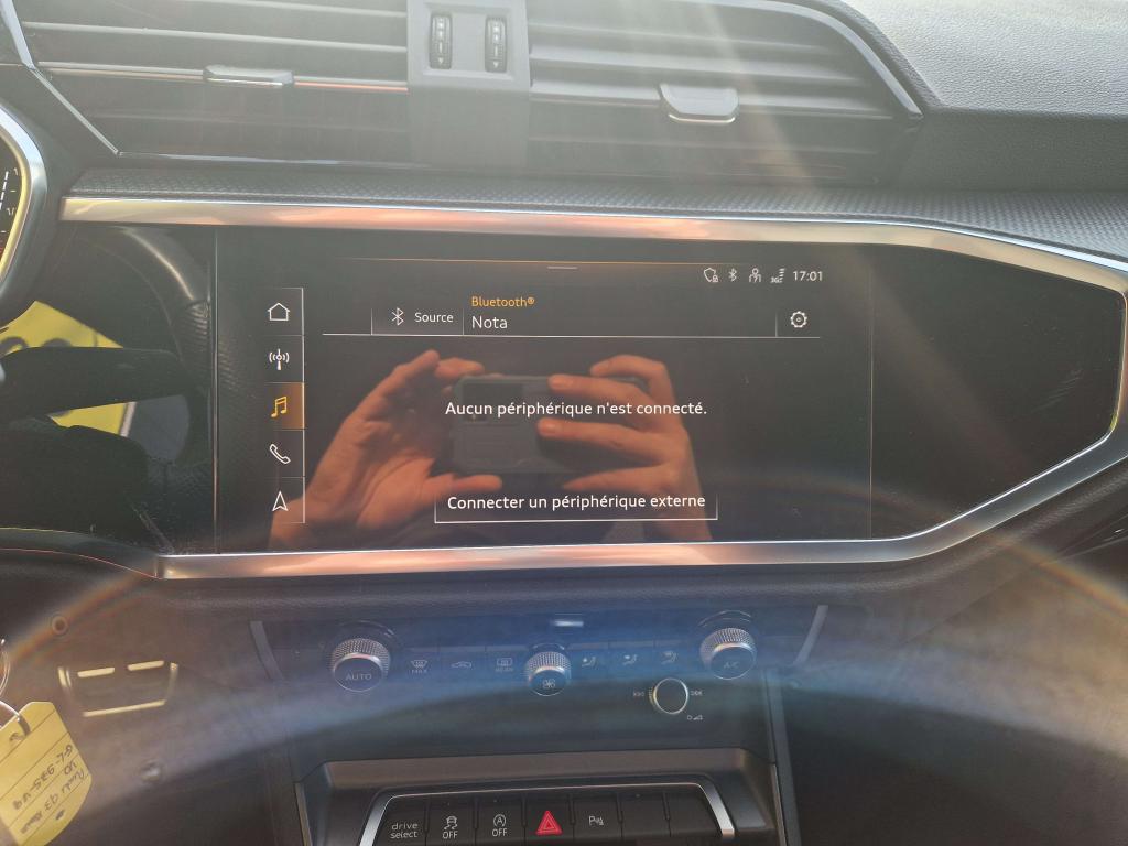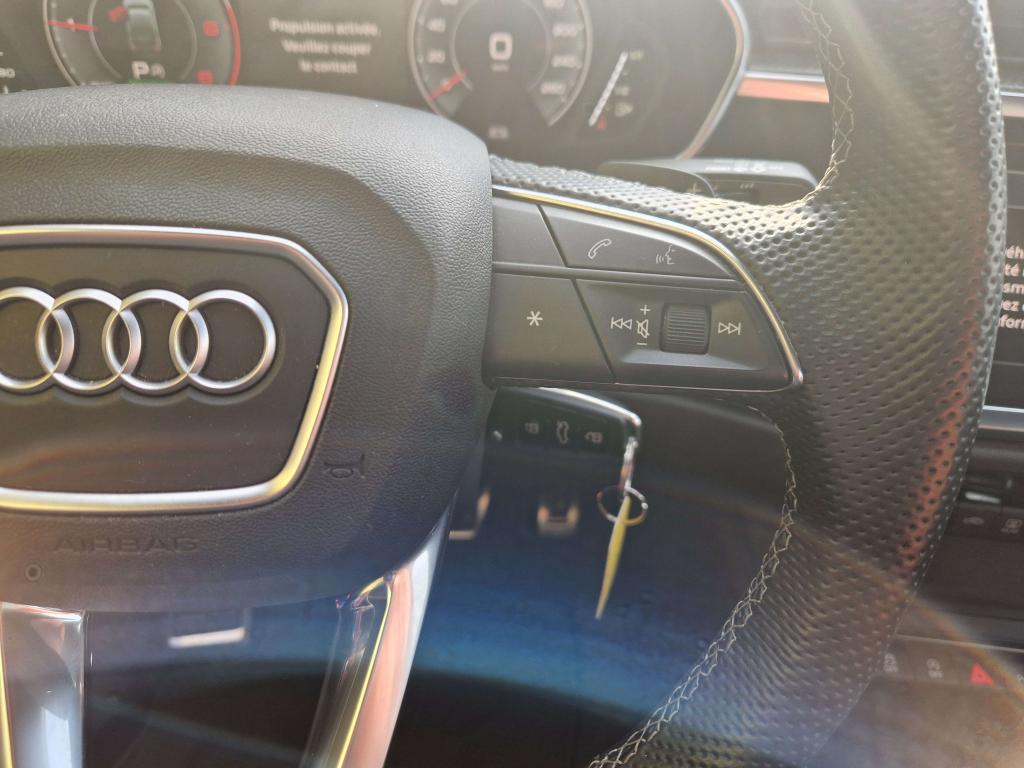 2 prises USB à l’arrière (type-C) et prise 12 volts dans la console centrale arrièreAccoudoir central AR avec porte-gobeletsAccoudoir central coulissant en longueur, avec inclinaison réglable et vide-poches relevableAccoudoirs des contre-portes en similicuir monopur 550Alerte de franchissement de ligne avec maintien de voieAppel d’urgence Audi connectApplications décoratives en aluminium brossé mat foncéAppui lombaire à 4 axes pour les sièges avant, réglage électrique, horizontal et verticalAssise de banquette arrière coulissante en longueurAssise de banquette arrière rabattable 40/20/40Audi connect navigation et divertissementAudi connect sécurité et assistance en ligneAudi Drive SelectAudi Hold AssistAudi Parking System PlusAudi pre sense basicAudi pre sense frontAudi virtual cockpit : combiné d'instruments entièrement numérique de 10,25"Câbles de recharge pour téléphone portable, compatibles iPhone et AndroidCiel de pavillon en tissu noirClé à fréquence radioClimatisation automatique confort 2 zonesCombiné d’instruments entièrement numérique 10,25 poucesContrôle de pression des pneus ( TPMS )Détecteur de pluie et allumage automatique des projecteursDirection assistée électromécanique asservie à la vitesseDirection progressiveDossier de banquette AR réglables en inclinaisonEcrous antivolFixation pour sièges enfants ISOFIX et Top Tether pour les places arrière extérieuresHayon de coffre à ouverture et fermeture électriquesInterface BluetoothInterface USBJantes en aluminium coulé 5 branches en V, 7 J x 18 avec pneus 235/55 R18Kit réparationMMI navigation plus avec MMI touchOutillage de bordPack aluminium intérieurPack brillance extérieurPack Eclairage intérieurPack S line ExtérieurPack S line intérieurPare-brise feuilleté, athermique et acoustiquePeinture vernie Blanc ibisPhares à LED avec clignotants dynamiques à l’arrièreRéception radio numériqueRégulateur de vitesseRétroviseur intérieur électrochrome sans contourRétroviseurs extérieurs couleur carrosserieRétroviseurs extérieurs réglables, dégivrants et rabattables électriquement, incluant fonction rabat automatique pour le rétroviseur côté passager avantSièges avant réglables manuellement : hauteur d’assise, positionnement en longueur, inclinaison du dossier, hauteur des appuie-tête et hauteur des ceinturesSuspensions sportTrousse de secours, triangle de présignalisation et 2 vestes de sécuritéVolant 3 branches multifonctions plus en cuir