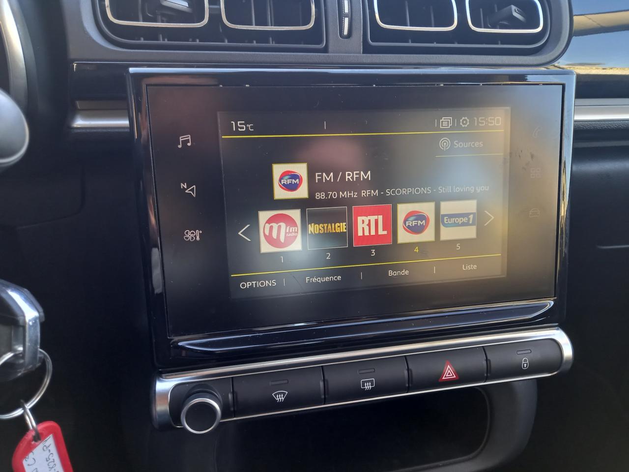ABS avec répartiteur électronique de freinage (REF) et aide au freinage d'urgence (AFU)Accoudoirs de panneaux de portes textile avec sangleAdhésifs de custodes avec liseré blanc ou rouge si toit rougeAide au démarrage en côteAide au stationnement arrièreAirbags frontaux, latéraux AV et rideauxAirbump Black avec ponctuelle colorée (blanc ou rouge si toit rouge)Alarme de non bouclage de ceinture conducteurAlarme de non bouclage de ceinture passagerAllumage des feux de détresse en cas de forte décélérationBandeau de planche de bord Noir Brillant avec cerclage Chrome SatinBanquette arrière fractionnable 2/3 - 1/3CITROËN Connect Radio sur tablette tactile 7"Clignotants impulsionnelsClimatisation automatique avec fonction filtrage de l'airCommandes audio au volantCondamnation centralisée avec plipDétecteur de sous-gonflageDirection à assistance électriqueElargisseurs d'ailes et bas de caisse noir matEnjoliveurs 3D 16"Enjoliveurs d'antibrouillard couleur pavillonEnjoliveurs de montant central et custode Noir BrillantESPFeux arrière à effet 3DFeux diurnes à LEDFixations Isofix pour siège passager avant et places latérales arrièreKit de dépannage provisoire de pneumatiquesLève vitres électriques avant et arrière impulsionnelsMirror ScreenOrdinateur de bordPack SafetyPack VisibilitéPavillon bi-ton avec coques de rétroviseurs extérieurs couleur pavillonPlafonnier avant avec lecteurs de carte et LED d'ambiancePoignées de portes extérieures couleur caissePommeau de levier de vitesses en croûte de cuirPrises 12 volts AVProjecteurs antibrouillardRégulateur et limiteur de vitesseRétroviseurs extérieurs réglables électriquement et dégivrantsSécurité enfants manuelleSiège conducteur réglable en hauteurSystème Audio CD 6 HP compatible MP3Tissu Mica GreyToit bi-ton Noir OnyxVolant en croûte de cuirVolant réglable en hauteur et en profondeur