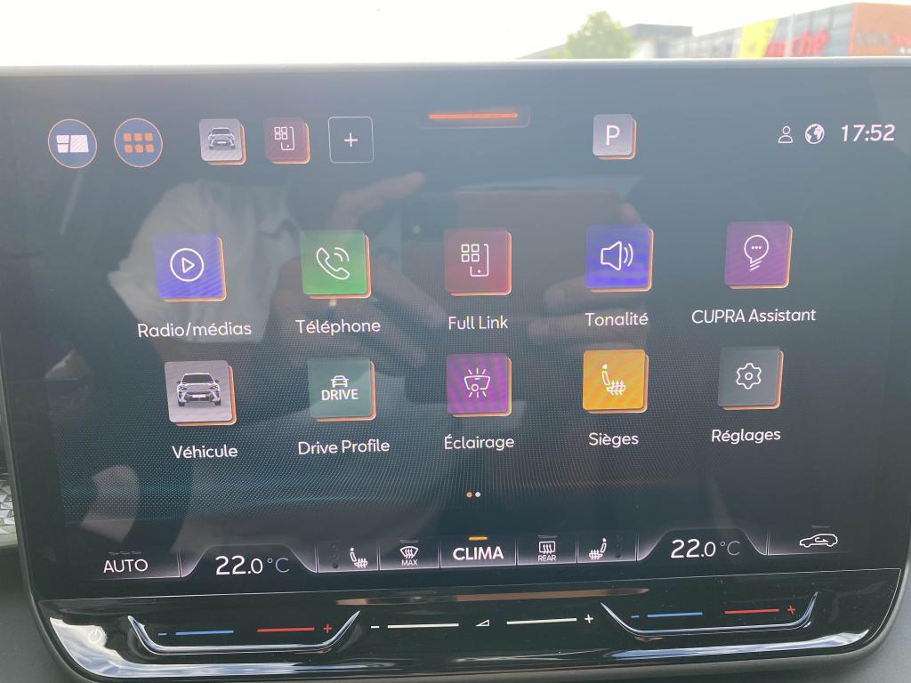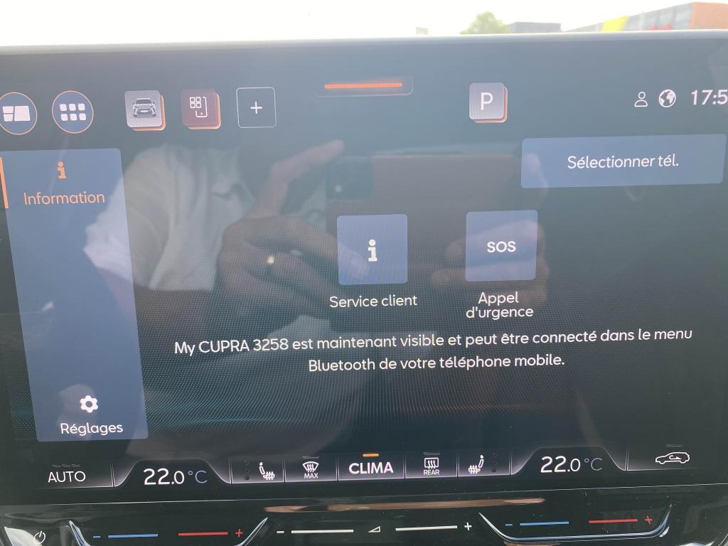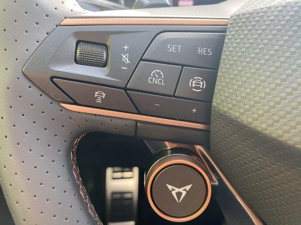 2 ans de Garantie Constructeur avec kilométrage illimité5 ans de garantie ou 100000 kmAccès et démarrage mains-libresAccoudoir central avantAide au stationnement avant/arrièreAirbag central avantAirbags latéraux et rideauxAlarme antivol avec fonction safelockAppel d'urgence - EcallBandeau arrière "Infinite Light" intégrant le logo CUPRA lumineux, avec signature lumineuse Tri-LED et cérémonie de bienvenueBanquette arrière 2/3-1/3 et coulissanteBluetoothCaméra de reculCiel de pavillon noirClimatisation automatique Climatronic tri-zoneConnectivité 4x USB-CConnectivity Box avec chargeur à inductionCUPRA BoxCUPRA ConnectDesign Intérieur DEEP OCEANDétecteur de pluie et allumage automatique des projecteursDigital Cockpit 10,25" simple avec 2 affichages personnalisablesDirection dynamiqueDossiers de banquette AR rabattables 2/3 1/3Eclairage d'ambiance intérieur intelligentEclairage de bienvenue avec projection du logo CUPRA au solExtension de garantie 3 ans ou 100 000 kmFixations Isofix et Toptether aux sièges arrièreFront Assist avec détection des piétons et des cyclistesFull Link sans fil (Android Auto + Apple CarPlay)Hayon électrique + fonction Virtual PedalJantes 18" Atomic usinéesKit de sécurité CupraLampe de lecture avant et arrière à LEDLane Assistant : assistant de maintien dans la voiePalettes de changement de rapportsPare-choc ton caisse avec extracteur de couleur contrastantePare-soleil avant avec miroirs de courtoisie éclairésPeinture Bleu FjordProjecteurs anti-brouillard triangulaires avec éclairage d'intersection et éclairage d'accompagnementProjecteurs Full LED avec signature Tri-LEDRadio Numérique DABRails de toit noirsRégulateur de vitesse adaptatifRétroviseur intérieur électrochromeSeuils de porte CUPRA rétro-éclairésSign Assist (reconnaissance des panneaux de signalisation)Système audio à 9 haut-parleurs avec contrôle vocalSystème d'info-divertissement avec écran tactile HD 12,9" et touches de commandes tactiles rétro-éclairéesSystème de détection de la somnolence du conducteurTapis de sol en matière recycléeVitres arrière surteintéesVolant Supersports Cupra avec boutons satellitesVolant Supersports CUPRA chauffant en cuir
