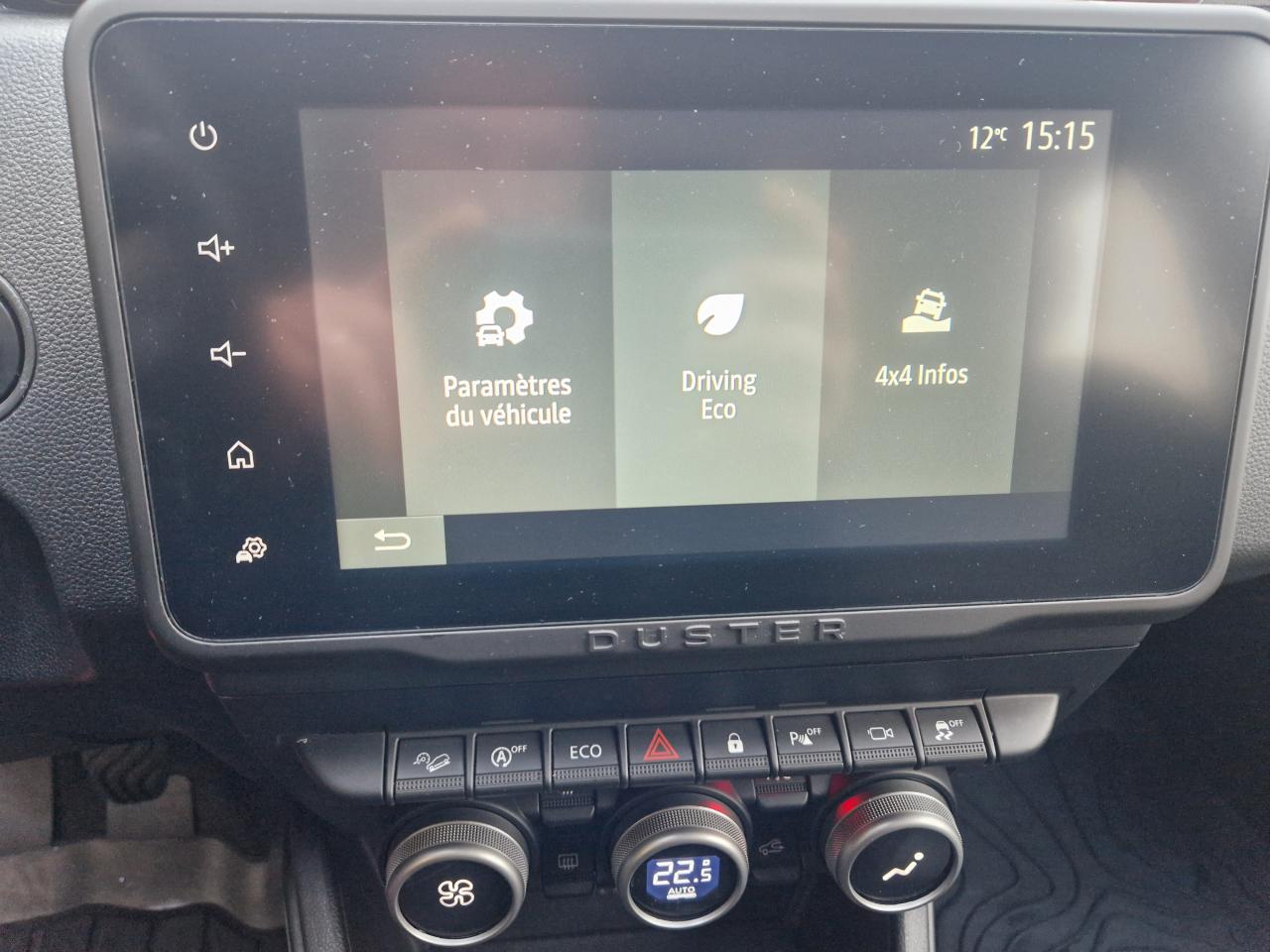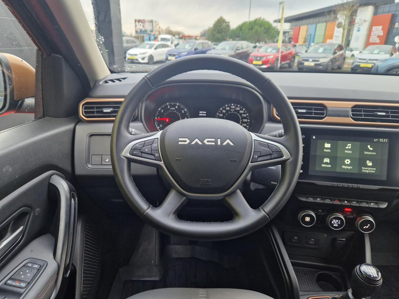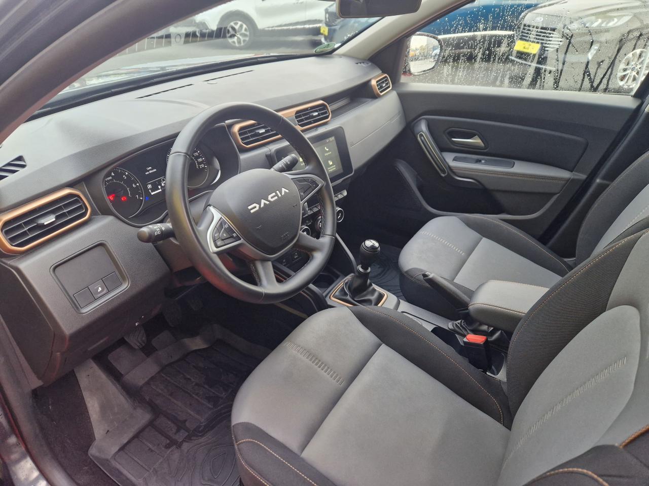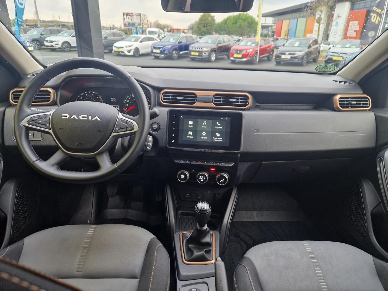 2 spots de lecture conducteur et passager avant3e ceinture arrière 3 points (enrouleur)ABS avec aide au freinage d'urgenceAide au démarrage en côte (HSA)Airbag frontal conducteurAirbag frontal passager déconnectableAirbags latéraux épaules et rideauxAlerte visuelle et sonore du non-bouclage ceinture avantAntenne de type requin couleur noir métalliqueAvertisseur d'angles mortsBanquette arrière rabattable et fractionnable 1/3-2/3Barres de toit Gris MégalitheBarres de toit modulables avec lettrage Duster Brun CuivréBoucliers ton caisseCache-bagagesCalandre avec inserts décoratifs blancs et logoCaméra MultivuesCeintures de sécurité à prétensionneur pyrotechniqueClimatisation automatiqueCondamnation des portes électrique avec télécommande à radiofréquencesDirection assistée électriqueEclairage boîte à gantsEclairage coffreEco modeEnjoliveurs d’ailes en plastique noirEntourage d'aérations de console centrale Motif Brun CuivréEssuie-glace à déclenchement automatiqueFeux de croisement avant Eco-LEDFeux de jour automatiquesIndicateur de changement de vitessesJantes alliage 17” Tergan noiresKit de gonflageLève-vitre électrique conducteur impulsionnelLève-vitres arrière électriquesLève-vitres avant électriquesLunette arrière dégivrante / Essuie-vitre arrière temporiséMédaillons des portes avant TEP avec surpiqûresOrdinateur de bord 13 fonctions (écran TFT)Pack Navigation - Europe de l'ouestPack TechnoPeinture Blanc GlacierPlafonnier central pour passagers arrièrePoches aumônières au dos des sièges avantPoignées de portes couleur carrosseriePoignées de portes intérieures Gris AcierPommeau de levier de vitesses Noir BrillantPrise 12 V à l'arrièrePrises 12 V à l'avantProjecteurs antibrouillardRadars de reculRangement dans les portes arrièreRégulateur et limiteur de vitesseRétroviseurs extérieurs Brun CuivréRétroviseurs extérieurs électriques et dégivrantsRétroviseurs rabattables automatiquementSellerie mixte TEP MicroCloud avec surpiqûres Brun CuivréSeuils de portes avant sérigraphiésSiège conducteur avec réglage lombaireSiège conducteur réglable en hauteurSignature lumineuse à LEDSkis avant / arrière Gris MégalitheSpot de lecture passagers arrièreSystème de contrôle de trajectoire ESCSystème de contrôle en descenteSystème de détection de la pression des pneusSystème de fixations ISOFIX pour siège enfant aux places latérales arrièreSystème Stop & StartTapis de sol avant et arrière sérigraphiés en caoutchoucVitres surteintéesVolant réglable en hauteur et en profondeurVolant soft feelZone repose pied conducteur en plastique