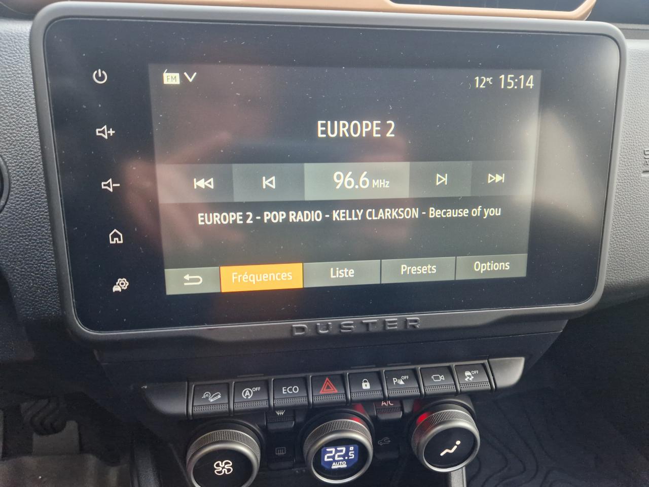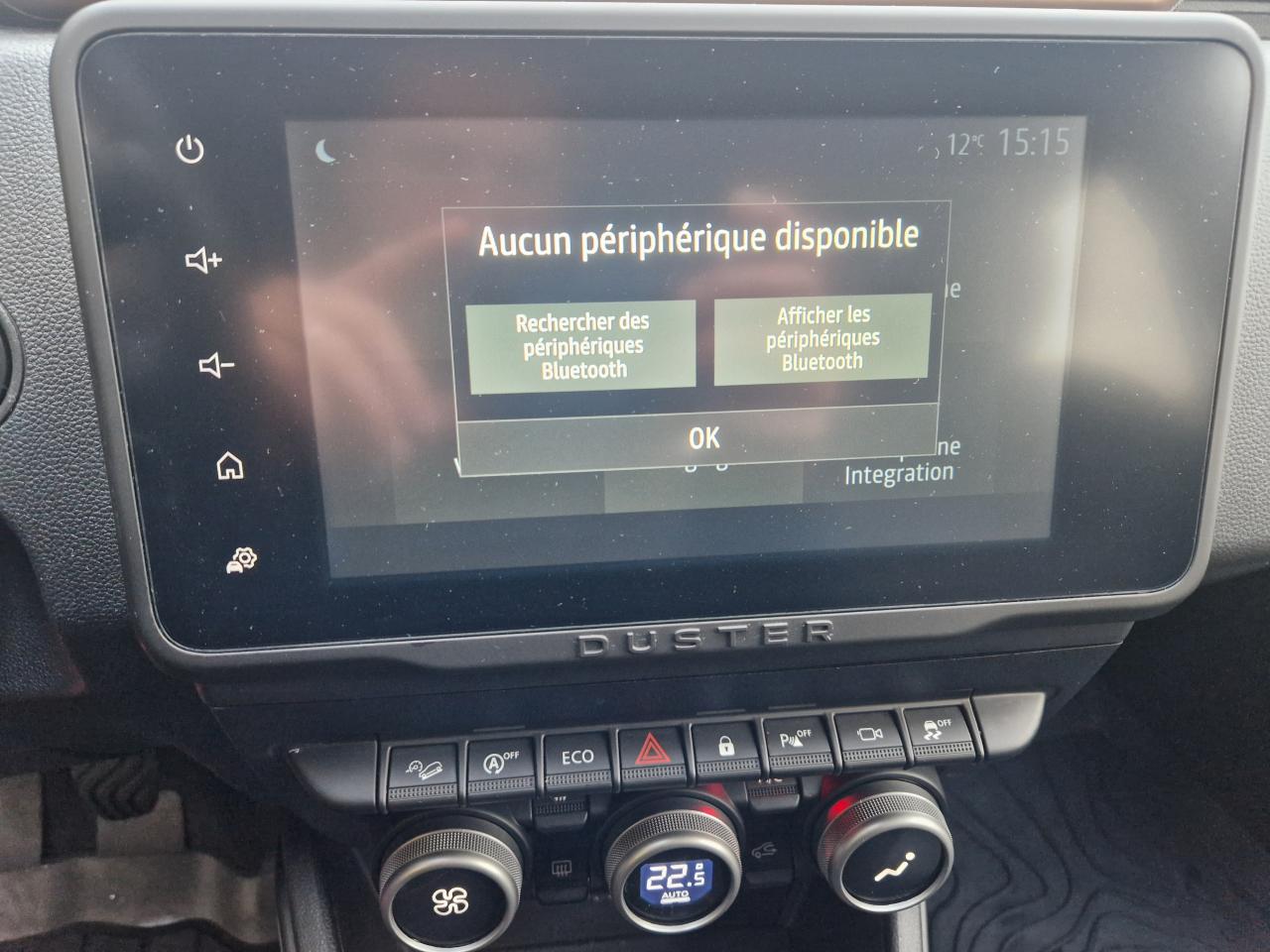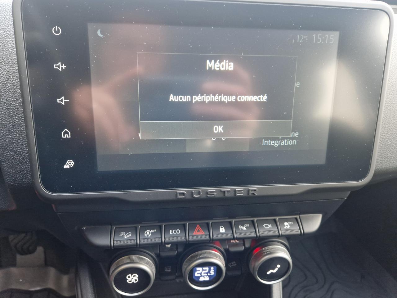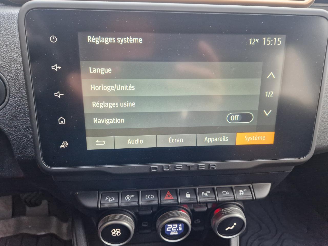 2 spots de lecture conducteur et passager avant3e ceinture arrière 3 points (enrouleur)ABS avec aide au freinage d'urgenceAide au démarrage en côte (HSA)Airbag frontal conducteurAirbag frontal passager déconnectableAirbags latéraux épaules et rideauxAlerte visuelle et sonore du non-bouclage ceinture avantAntenne de type requin couleur noir métalliqueAvertisseur d'angles mortsBanquette arrière rabattable et fractionnable 1/3-2/3Barres de toit Gris MégalitheBarres de toit modulables avec lettrage Duster Brun CuivréBoucliers ton caisseCache-bagagesCalandre avec inserts décoratifs blancs et logoCaméra MultivuesCeintures de sécurité à prétensionneur pyrotechniqueClimatisation automatiqueCondamnation des portes électrique avec télécommande à radiofréquencesDirection assistée électriqueEclairage boîte à gantsEclairage coffreEco modeEnjoliveurs d’ailes en plastique noirEntourage d'aérations de console centrale Motif Brun CuivréEssuie-glace à déclenchement automatiqueFeux de croisement avant Eco-LEDFeux de jour automatiquesIndicateur de changement de vitessesJantes alliage 17” Tergan noiresKit de gonflageLève-vitre électrique conducteur impulsionnelLève-vitres arrière électriquesLève-vitres avant électriquesLunette arrière dégivrante / Essuie-vitre arrière temporiséMédaillons des portes avant TEP avec surpiqûresOrdinateur de bord 13 fonctions (écran TFT)Pack Navigation - Europe de l'ouestPack TechnoPeinture Blanc GlacierPlafonnier central pour passagers arrièrePoches aumônières au dos des sièges avantPoignées de portes couleur carrosseriePoignées de portes intérieures Gris AcierPommeau de levier de vitesses Noir BrillantPrise 12 V à l'arrièrePrises 12 V à l'avantProjecteurs antibrouillardRadars de reculRangement dans les portes arrièreRégulateur et limiteur de vitesseRétroviseurs extérieurs Brun CuivréRétroviseurs extérieurs électriques et dégivrantsRétroviseurs rabattables automatiquementSellerie mixte TEP MicroCloud avec surpiqûres Brun CuivréSeuils de portes avant sérigraphiésSiège conducteur avec réglage lombaireSiège conducteur réglable en hauteurSignature lumineuse à LEDSkis avant / arrière Gris MégalitheSpot de lecture passagers arrièreSystème de contrôle de trajectoire ESCSystème de contrôle en descenteSystème de détection de la pression des pneusSystème de fixations ISOFIX pour siège enfant aux places latérales arrièreSystème Stop & StartTapis de sol avant et arrière sérigraphiés en caoutchoucVitres surteintéesVolant réglable en hauteur et en profondeurVolant soft feelZone repose pied conducteur en plastique