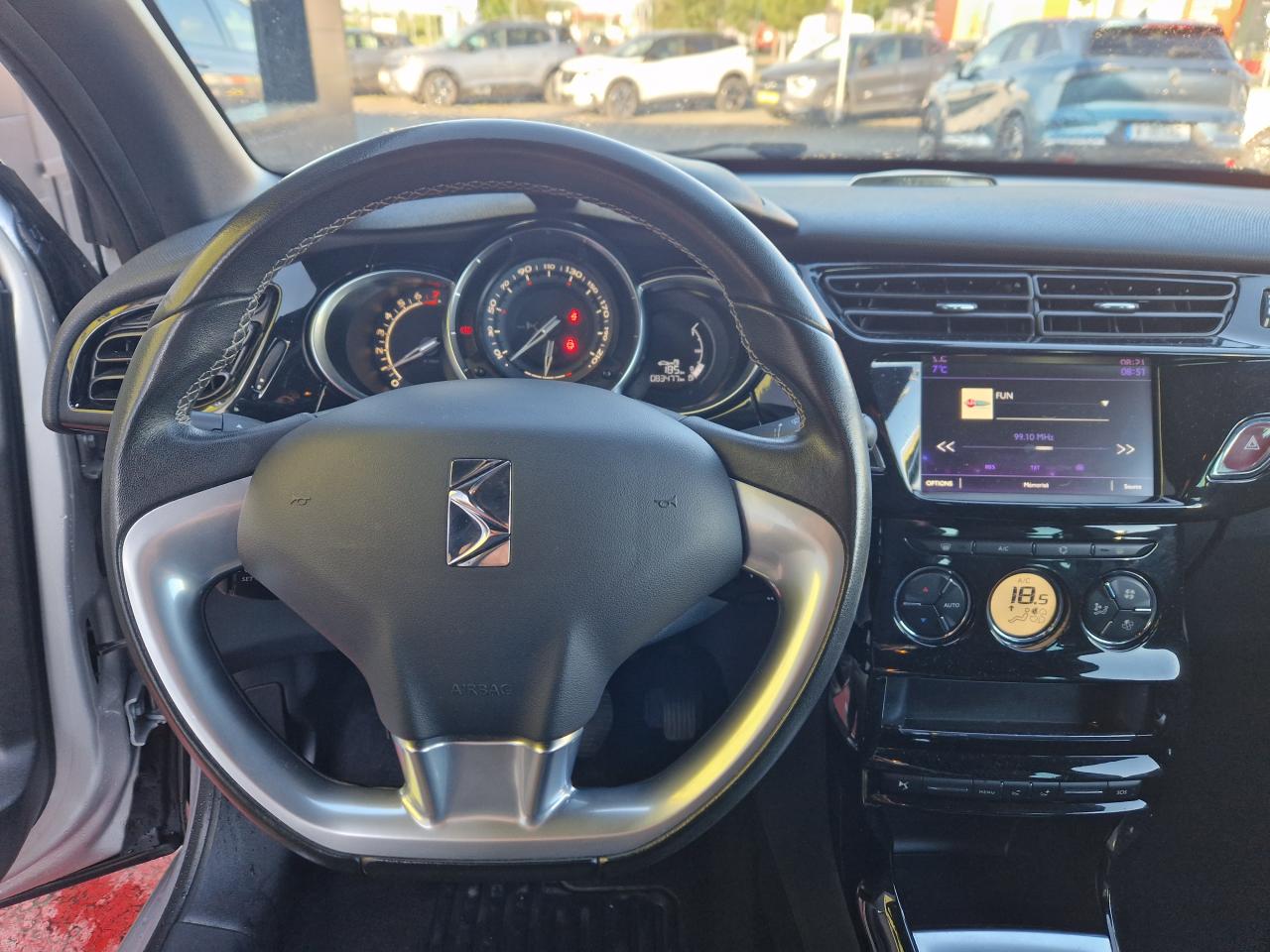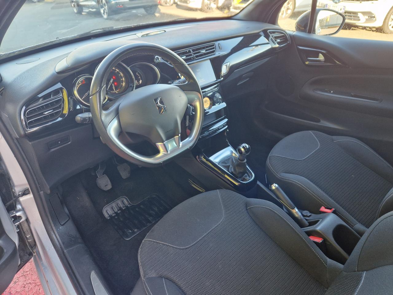 ABS avec répartiteur électronique de freinage (REF) et aide au freinage d'urgence (AFU)Accoudoir central avantAirbags frontaux conducteur et passager (déconnectable côté passager)Airbags latéraux type "thorax" pour conducteur et passager avantAirbags rideaux aux places avant et arrièreAppuie-tête avant et arrière règlables en hauteurBaguettes latérales chroméesBoîte à gants éclairée et ventiléeCalandre DS Wings chroméeCanule d'échappement chroméeCondamnation automatique des portes et du volet arrière en roulantCondamnation centralisée avec télécommandeContrôle dynamique de stabilité (ESP)Détection de sous-gonflage des pneumatiquesDirection électrique à assistance variableEclairage d'ambiance : cave à pied et rangement de consoleFeux arrière 3D à LEDFeux diurnes à LEDFixations ISOFIX pour sièges enfants aux places latérales arrièreIndicateur de changement de rapportIndicateur de température extérieureJantes alliage 16" ARISTEEKit Décor intérieur Noir BrillantKit de dépannage provisoire de pneumatiquesKit mains libres Bluetooth et prise USBLève-vitres électriques avant à fonction séquentiel et antipincement côté conducteurOrdinateur de bord multifonctionPack AutoParfumeur d'ambiancePieds de rétroviseurs extérieurs chromésPlip avec insert Jaune Pégase, Blanc, Brun Topaze, Noir ou Vert EmeraudePoignées extérieures des portes chroméesPrise 12 volts à l'avantRégulateur et limiteur de vitesseRétroviseurs extérieurs réglables électriquementSiège conducteur réglable en hauteurSièges conducteur et passager avant réglables en longueur et inclinaisonSystème audio sur tablette tactile 7''Témoin et alerte de non bouclage / débouclage de ceinture conducteur et passager avantTissu Grand Rayados Noir BasalteVitres latérales et lunette arrière surteintéesVolant croûte de cuir avec jonc Chrome satinéVolant réglable en hauteur et en profondeur
