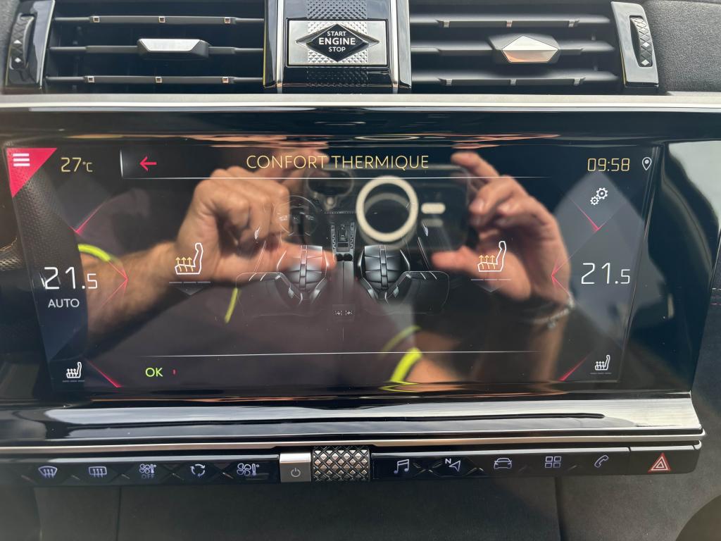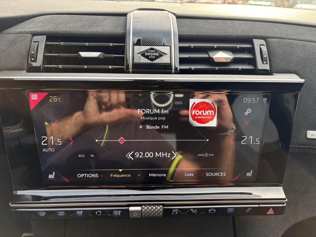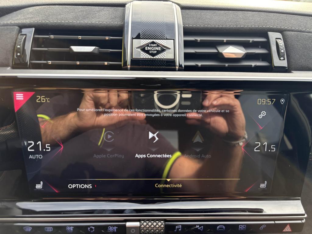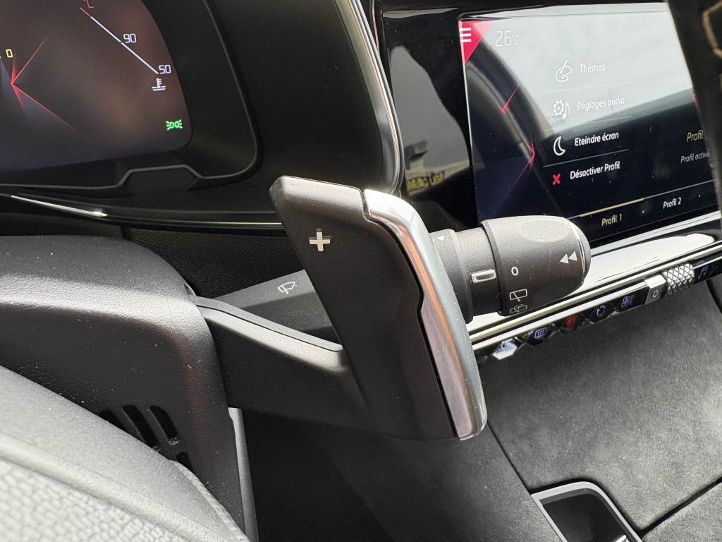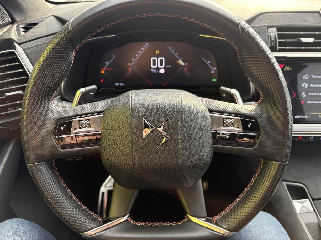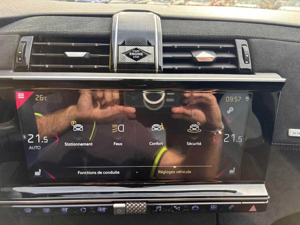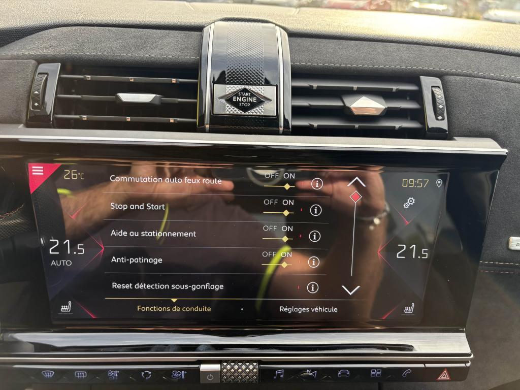 2 prises USB AR4 Crochets d'arrimage dans le coffreABS avec répartiteur électronique de freinage (REF)Accoudoir central avant avec rangementAérateurs aux places arrièresAide au démarrage en côteAide au stationnement arrièreAirbags de type « thorax » aux places avantAirbags frontaux conducteur et passager (déconnectable côté passager)Airbags rideaux aux places avant et arrièreAlerte Active de Franchissement Involontaire de Ligne (AAFIL)Alerte attention conducteurAllumage automatique des feux de détresseAllumage automatique des projecteursAntenne radio intégrée à la lunette arrièreAntibrouillards avant à LED avec éclairage d'intersectionAssistance au freinage d'urgenceAumônières au dos des sièges avantAvertisseur sonore bi-tonBadge de planche de bord DS PERFORMANCE LineBadges latéraux sur portes avant PERFORMANCE LineBanquette arrière 2/3 - 1/3 et 3 appuie-têtesBanquette arrière rabattable depuis le coffreBoîte à gants réfrigéréeClignotants impulsionnels 3 coupsCombiné numérique 12"Condamnation automatique des portes, du hayon et de la trappe à carburant en roulantContrôle de stabilité de l'attelageContrôle de Traction IntelligentContrôle dynamique de stabilité (ESP) avec antipatinage des roues (ASR)Coques de rétroviseurs extérieurs Noir Perla NeraDétecteur de sous-gonflageDirection à assistance variableEclairage d'accompagnement automatiqueEclairage d'accueil automatiqueEcran tactile 12"Entourage des vitres latérales chroméFeux arrière 3D traitement écailles avec indicateurs de direction défilant à LEDFeux diurnes à LEDFiltre à pollenFixations Isofix pour siège passager avant et places latérales arrièreFrein de stationnement électrique automatiqueGuide utilisateur numériqueIndicateur de rapport engagéIntérieur Alcantara NoirJonc sur volet Noir pailleté texturé et bouclier arrière chroméKit de dépannage provisoire de pneumatiquesLève-vitres électriques avant et arrière, séquentiels et antipincementLunette arrière chauffanteMirror ScreenNavigation et Radio Numérique DABOrdinateur de bordOuverture et fermeture à distance des vitresPack Auto ConfortPack SécuritéPack Sièges ConfortPalettes au volantPanneaux de porte en AlcantaraPare-brise acoustiquePare-soleil rembourrés avec éclairage à LEDPédalier et repose-pied en aluminiumPeinture opaque Blanc BanquisePieds de rétroviseurs extérieurs couleur carrosseriePlanche de bord en AlcantaraPoignées de portes couleur carrosseriePrise 12V dans le coffrePrise USB Data à l'avantProjecteurs xénonRangements latérauxReconnaissance des panneaux de vitesse et préconisationReconnaissance vocaleRégulateur et limiteur de vitesseRétroviseur intérieur électrochrome sans contourRétroviseurs extérieurs rabattables électriquement avec projection au sol du logo DSSabot avant finition Gris AluminiumSangle de coffreSeuil de coffre chroméSiège passager avec réglage lombaire électriqueSOS & ASSISTANCESystème Audio Analogique à 8 HP avec prise USB et BluetoothSystème sonore polyphoniqueTémoin et alerte sonore de non-bouclage des ceintures de sécurité avant et arrièreVérins de capot moteurVerrouillage automatique des portes en roulantVitres arrière et lunette arrière surteintéesVolant réglable en hauteur et en profondeurZone De Danger (inclut avec NAVIGATION pendant 3 ans)