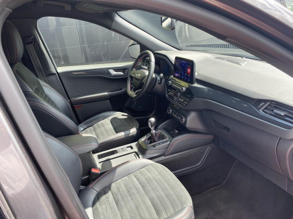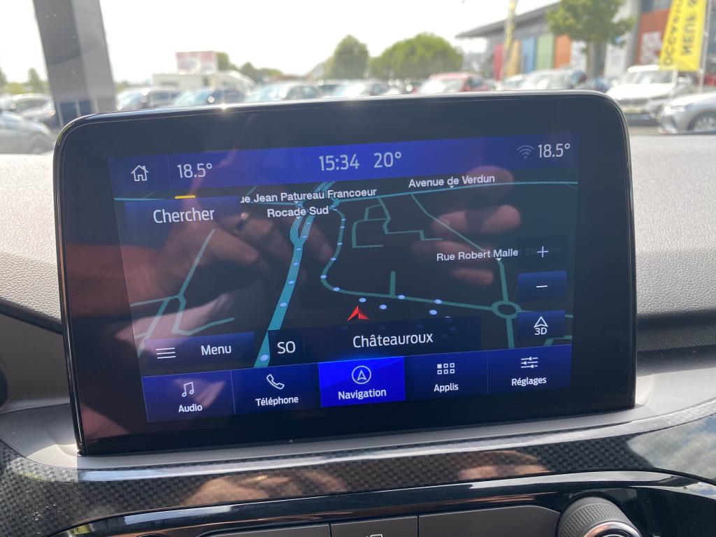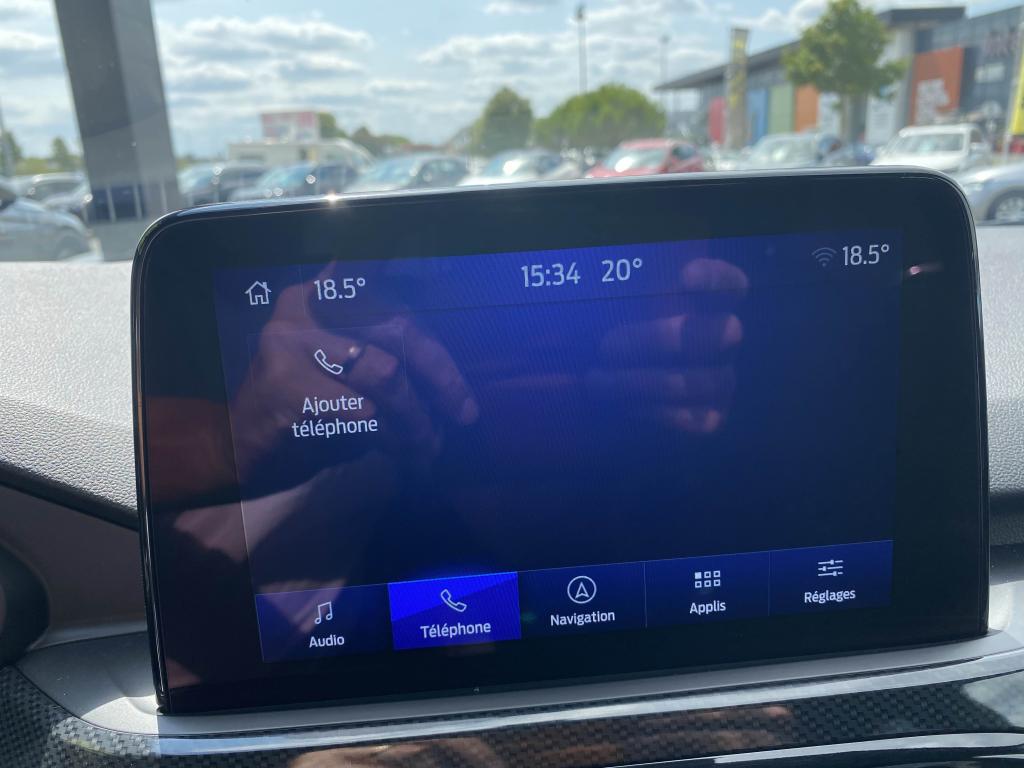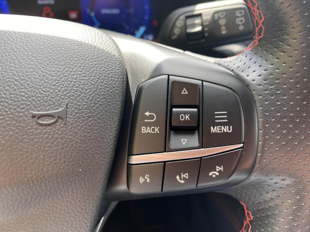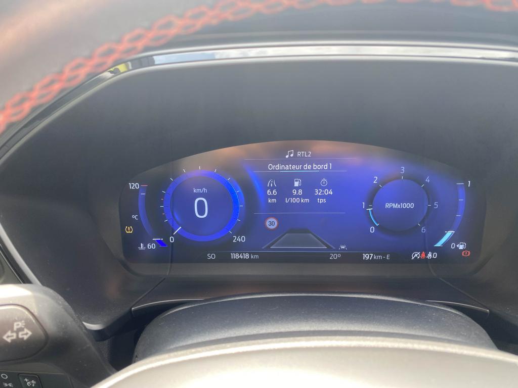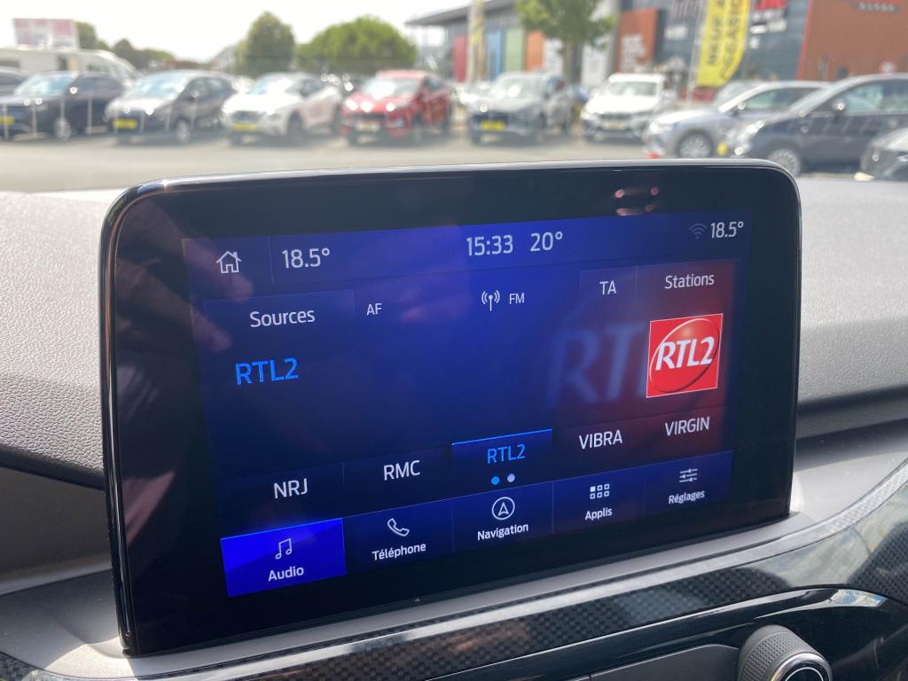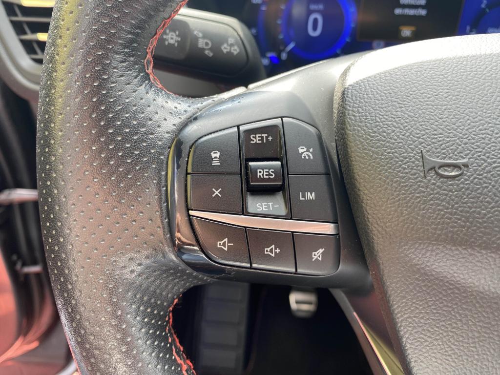 2 Fixations Isofix à l'arrière2 ports de charge USB situés dans la console centrale3 appuie-tête arrière4 Modes d'alimentation sélectionnables (Auto, Now, Later, Charge)5 ceintures de sécurité 3 points5 Modes de conduite sélectionnables (normal, eco, sport, faible adhérence, trail)Accoudoir avec porte-gobelet sur banquette arrièreAide au démarrage en côteAide au stationnement avant/arrièreAir conditionné à régulation automatique 2 zonesAirbags frontaux, latéraux (thorax) et rideauxAlerte de franchissement de ligne avec maintien de voieAllumage automatique des essuie-glacesAllumage automatique des projecteursBadges ST-LineBanquette arrière coulissante et rabattable 60/40Barres de toit noiresBecquet arrière couleur carrosserieBouton de démarrage Ford Power - démarrage du moteur sans cléChargeur de smartphone par inductionCombiné d'instrumentation numérique 12,3" avec EcomodeConsole centrale avec accoudoirCorrecteur électronique de trajectoire ESPDésactivation de l'airbag du passager avantDisques de frein arrièreDouble sortie d'échappement ST-LineEclairage d'ambiance intérieurEclairage dans le coffreEntourage de vitres noirEtriers de frein rougesFeux antibrouillard à LED avec éclairage d'angleFeux arrière à LEDFeux de jour à LEDFeux de route intelligents (passage feux de croisement/route automatique)FordPass Connect avec modem embarqué 4 et fonction eCallFrein de stationnement électriqueGrille de calandre ST-LineJantes alliage 18" 5x2 branches finition ST-Line avec pneus Summer BSW 225/60 R18Kit carrosserie ST-LineKit de réparation pneumatiqueLevier de vitesses Sensico ST-LineLimiteur de vitesse intelligentOuverture du Hayon Motorisé avec commande à distancePédalier en aluminiumPare-brise acoustiquePare-brise en verre laminéPare-chocs couleur carrosseriePeinture non-métallisée Bleu AbyssePhares LED reflectorPlancher de coffre ajustablePlaques de seuils de portes avant ST-LinePrise 12V dans le coffrePrise 230 V à l'arrièreRégulateur de vitesseRétroviseur intérieur électrochromeRétroviseurs extérieurs couleur carrosserieRétroviseurs extérieurs rabattables électriquement et dégivrantsSécurité enfant avec verrouillage électrique des portes arrièreSiège conducteur réglable en hauteur avec soutien lombaire (8 positions)Siège passager réglable en hauteur avec soutien lombaire (8 positions)Suspensions sportSystème audio B&O bi-tuner AM/FM Ford SYNC 3, avec écran tactile 8" DAB, commandes vocales, 2 ports USB, compatible AppLink, Apple CarPlay et Android auto, 10 haut-parleursSystème audio bi-tuner AM/FM Ford SYNC 3, avec écran tactile 8" DAB, commandes vocales, 2 ports USB, compatible AppLink, Apple CarPlay et Android auto, 6 haut-parleursSystème de Navigation Europe et points d'intérêt MichelinSystème de sécurité précollision avec détection des piétonsSystème de surveillance de la vigilance du conducteurSystème de surveillance de pression des pneusSystème Keyfree (ouverture et démarrage mains libres)Système MyKey (seconde clé programmable)Tapis de sol avant et arrière ST-Line avec surpiqûres rougesTrappe à carburant Ford EasyFuelVerrouillage centralisé à distanceVitres arrière surteintéesVitres avant et arrière électriquesVolant à méplat 3 branches Sensico ST-Line avec surpiqûres rouges