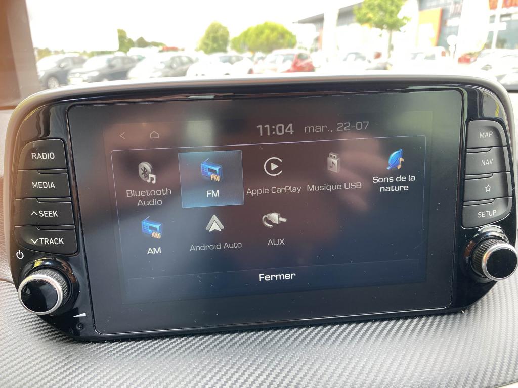 Accoudoir avantAccoudoir central arrière avec porte-gobeletAide au démarrage en côteAide au stationnement arrièreAirbag central avantAirbag passager déconnectableAirbags conducteur et passagerAirbags latéraux avantAirbags rideaux avant/arrièreAlarme périmétriqueAlerte de circulation transversale à l'arrière avec fonction freinageAntenne de toit « aileron de requin »Appuie-têtes arrière réglables en hauteurAppuie-têtes avant réglables en hauteur et ajustablesAssistance à la sortie du véhicule pour passagers arrièreAssistance active au maintien de voieAssistance active au suivi de voieCache-bagages à enrouleurCaméra de recul avec lignes de guidage activesCeintures avant réglables en hauteur avec prétensionneursChargeur sans fil pour smartphones compatiblesClimatisation automatique bi-zone avec capteur de désembuage automatiqueCommandes audio au volantCompatibilité Apple CarPlay et Android AutoCompteurs numériques 10,25''Connexion BluetoothConsole centrale avec bac de rangement sous l'accoudoirContrôle de pression des pneus ( TPMS )Contrôle de trajectoire électronique (ESP) avec gestion de la stabilité pour remorqueContrôle de vitesse en descenteDirection assistée électrique asservie à la vitesseDossier arrière rabattable 40/20/40 à distance avec commande depuis le coffreDouble sortie d'échappementDrive ModeeCall : appel d'urgence automatique aux services de secours avec géolocalisation du véhiculeEssuie-glaces avant automatique avec détecteur de pluie et allumage automatique des feuxFatigue Detection : Système de détection de fatigue du conducteurFeux de jour et feux de position avant à LEDFeux de route intelligentsFilet de coffreFrein de parking électrique avec fonction Auto-HoldFreinage actif d'urgence avec détection des piétons et cyclistesJantes alliage 17''Limiteur de vitesse intelligentMiroirs de courtoisie éclairésNavigation Europe avec programme de mise à jour de la cartographie et services Hyundai LivePoches aumônières au dos des sièges avantPoignées de portes couleur carrosseriePoignées de portes intérieures grain métalPorte-gobelets à l'avant et à l'arrièrePrise 12V à l'avant et dans le coffrePrise USB arrièrePrise USB avantProtections de seuils de portesRadio Numérique DABRails de toitReconnaissance des panneaux de limitation de vitesseRégulateur de vitesseRétroviseur intérieur électrochromeRétroviseurs électriques dégivrants, rabattables électriquement avec répétiteur intégréRétroviseurs extérieurs couleur carrosserieServices connectés BlueLink avec carte SIMSiège conducteur à réglage lombaire électriqueSièges arrière inclinablesSièges avant réglables en hauteurSurveillance des angles morts avec assistance au changement de voieSystème audio RDS, MP3, 4 haut-parleurs et 2 tweetersSystème Isofix pour siège enfant aux places latérales arrière (2ème rangée)Système multimédia avec écran couleur tactile 10,25'' et reconnaissance vocaleVerrouillage automatique des portes en roulantVerrouillage centralisé à distance avec clé rétractableVide-poches dans portes avant/arrièreVitres électriques, avec commande séquentielle à l'avantVolant et pommeau de levier de vitesses gainés cuirVolant réglable en hauteur et en profondeur