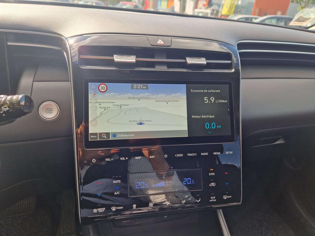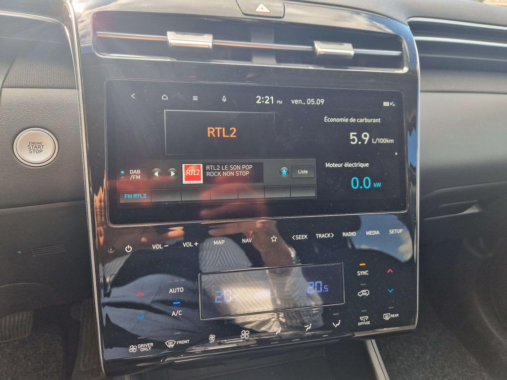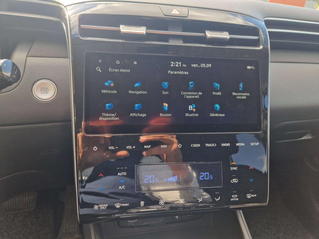 Accès et démarrage mains-libresAccoudoir avantAccoudoir central arrière avec porte-gobeletAide au démarrage en côteAide au stationnement arrièreAide au stationnement avantAirbag central avantAirbag passager déconnectableAirbags conducteur et passagerAirbags latéraux avantAirbags rideaux avant/arrièreAlarme périmétriqueAlerte de circulation transversale à l'arrière avec fonction freinageAllumage automatique des projecteursAntenne de toit « aileron de requin »Appuie-têtes arrière réglables en hauteurAppuie-têtes avant réglables en hauteur et ajustablesAssistance active au maintien de voieAssistance active au suivi de voieAssistant de sortie du véhiculeCache-bagages à enrouleurCalandre chromée "Parametric Dynamics"Caméra de recul avec lignes de guidage activesCapteur de désembuage automatique du pare-briseCapteur de pluieCeintures avant réglables en hauteur avec prétensionneursChargeur sans fil pour smartphones compatiblesClignotants avant à LEDClimatisation automatique bi-zone avec capteur de désembuage automatiqueCommandes audio au volantCompatibilité Apple CarPlay et Android AutoCompteurs numériques 10,25''Connexion BluetoothConsole centrale avec bac de rangement sous l'accoudoirContrôle de pression des pneus ( TPMS )Contrôle de trajectoire électronique (ESP) avec gestion de la stabilité pour remorqueContrôle de vitesse en descenteDirection assistée électrique asservie à la vitesseDossier arrière rabattable 40/20/40 à distance avec commande depuis le coffreDouble sortie d'échappementDrive ModeeCall : appel d'urgence automatique aux services de secours avec géolocalisation du véhiculeEclairage additionnel en virageEclairage d'ambiance intérieur à LED personnalisableFatigue Detection : Système de détection de fatigue du conducteurFeux arrière à LED avec bandeau lumineuxFeux de jour et de position avant à LED à effet miroirFeux de route intelligentsFilet de coffreFrein de parking électrique avec fonction Auto-HoldFreinage actif d'urgence avec détection des piétons et cyclistesJantes alliage 17''Joncs de vitres chromésLimiteur de vitesse intelligentMiroirs de courtoisie éclairésNavigation Europe avec programme de mise à jour de la cartographie et services Hyundai LivePalettes au volantPare-brise athermiquePare-soleil intégrés dans les portes arrièrePoches aumônières au dos des sièges avantPoignées de portes couleur carrosseriePoignées de portes intérieures grain métalPorte-gobelets à l'avant et à l'arrièrePrise 12V à l'avant et dans le coffrePrise USB arrièrePrise USB avantProjecteurs avant bi-LEDProtection arrière grain métalProtection avant grain métalProtections de seuils de portes grain métalRadio Numérique DABRails de toitReconnaissance des panneaux de limitation de vitesseRégulateur de vitesseRétroviseur intérieur électrochromeRétroviseurs électriques dégivrants, rabattables électriquement avec répétiteur intégréRétroviseurs extérieurs couleur carrosserieServices connectés BlueLink avec carte SIMSiège conducteur à réglage lombaire électriqueSièges arrière inclinablesSièges avant chauffantsSièges avant réglables en hauteurSurveillance des angles morts avec assistance au changement de voieSystème audio RDS, MP3, 4 haut-parleurs et 2 tweetersSystème de fixations ISOFIX pour siège enfant aux places latérales arrièreSystème de freinage anti multi-collisionsSystème multimédia avec écran couleur tactile 10,25'' et reconnaissance vocaleTransmission à commande électriqueVerrouillage automatique des portes en roulantVerrouillage centralisé à distanceVide-poches dans portes avant/arrièreVitres arrière surteintéesVitres avant et arrière électriques séquentiellesVolant et pommeau de levier de vitesses gainés cuirVolant réglable en hauteur et en profondeur