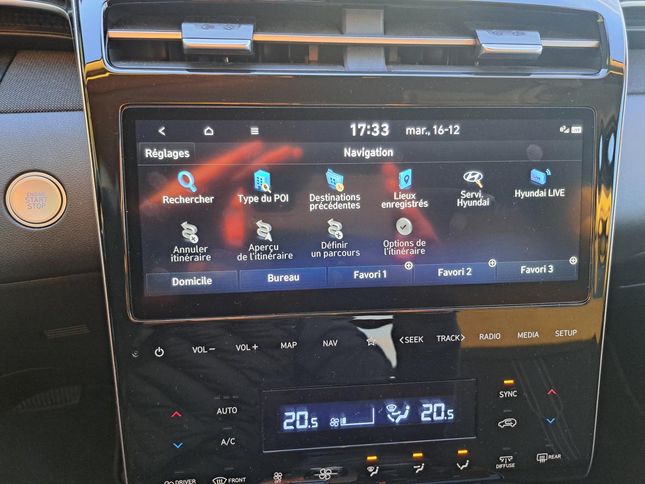 Accès et démarrage mains-libresAccoudoir avantAccoudoir central arrière avec porte-gobeletAide au démarrage en côteAide au stationnement arrièreAide au stationnement avantAirbag central avantAirbag passager déconnectableAirbags conducteur et passagerAirbags latéraux avantAirbags rideaux avant/arrièreAlarme périmétriqueAlerte de circulation transversale à l'arrière avec fonction freinageAllumage automatique des projecteursAntenne de toit « aileron de requin »Appuie-têtes arrière réglables en hauteurAppuie-têtes avant réglables en hauteur et ajustablesAssistance active au maintien de voieAssistance active au suivi de voieAssistant de sortie du véhiculeCache-bagages à enrouleurCalandre chromée "Parametric Dynamics"Caméra de recul avec lignes de guidage activesCapteur de désembuage automatique du pare-briseCapteur de pluieCeintures avant réglables en hauteur avec prétensionneursChargeur sans fil pour smartphones compatiblesClignotants avant à LEDClimatisation automatique bi-zone avec capteur de désembuage automatiqueCommandes audio au volantCompatibilité Apple CarPlay et Android AutoCompteurs numériques 10,25''Connexion BluetoothConsole centrale avec bac de rangement sous l'accoudoirContrôle de pression des pneus ( TPMS )Contrôle de trajectoire électronique (ESP) avec gestion de la stabilité pour remorqueContrôle de vitesse en descenteDirection assistée électrique asservie à la vitesseDossier arrière rabattable 40/20/40 à distance avec commande depuis le coffreDouble sortie d'échappementDrive ModeeCall : appel d'urgence automatique aux services de secours avec géolocalisation du véhiculeEclairage additionnel en virageEclairage d'ambiance intérieur à LED personnalisableFatigue Detection : Système de détection de fatigue du conducteurFeux arrière à LED avec bandeau lumineuxFeux de jour et de position avant à LED à effet miroirFeux de route intelligentsFilet de coffreFrein de parking électrique avec fonction Auto-HoldFreinage actif d'urgence avec détection des piétons et cyclistesJantes alliage 17''Joncs de vitres chromésLimiteur de vitesse intelligentMiroirs de courtoisie éclairésNavigation Europe avec programme de mise à jour de la cartographie et services Hyundai LivePalettes au volantPare-brise athermiquePare-soleil intégrés dans les portes arrièrePoches aumônières au dos des sièges avantPoignées de portes couleur carrosseriePoignées de portes intérieures grain métalPorte-gobelets à l'avant et à l'arrièrePrise 12V à l'avant et dans le coffrePrise USB arrièrePrise USB avantProjecteurs avant bi-LEDProtection arrière grain métalProtection avant grain métalProtections de seuils de portes grain métalRégulateur de vitesseRétroviseur intérieur électrochromeRétroviseurs électriques dégivrants, rabattables électriquement avec répétiteur intégréRétroviseurs extérieurs couleur carrosserieRadio Numérique DABRails de toitReconnaissance des panneaux de limitation de vitesseServices connectés BlueLink avec carte SIMSiège conducteur à réglage lombaire électriqueSièges arrière inclinablesSièges avant chauffantsSièges avant réglables en hauteurSurveillance des angles morts avec assistance au changement de voieSystème audio RDS, MP3, 4 haut-parleurs et 2 tweetersSystème de fixations ISOFIX pour siège enfant aux places latérales arrièreSystème de freinage anti multi-collisionsSystème multimédia avec écran couleur tactile 10,25'' et reconnaissance vocaleTransmission à commande électriqueVerrouillage automatique des portes en roulantVerrouillage centralisé à distanceVide-poches dans portes avant/arrièreVitres arrière surteintéesVitres avant et arrière électriques séquentiellesVolant et pommeau de levier de vitesses gainés cuirVolant réglable en hauteur et en profondeur