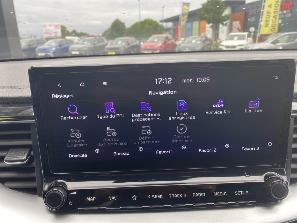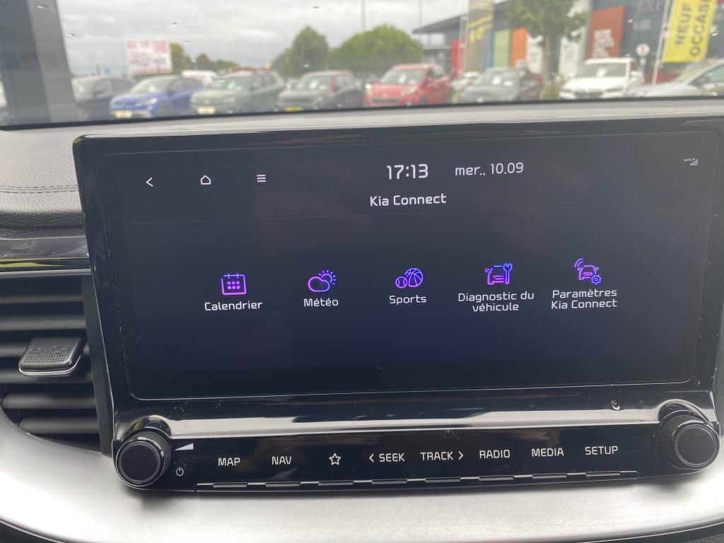 ABS avec répartiteur électronique de freinage (EBD)Accoudoir central arrière avec porte-gobelets intégrésAccoudoir central avant coulissant avec coffre de rangementAide au maintien dans la file (LKA)Airbags frontaux, latéraux et rideauxAllumage automatique des projecteursAppui-tête arrière réglables en hauteurAppuie-têtes avant réglables en hauteur et en inclinaisonAssistance active à la conduite dans les embouteillagesAssistance au démarrage en côteAssistance au freinage d'urgenceBacs de rangement dans les contre-portes avant et arrièreBanquette arrière rabattable 40/60Becquet arrière avec troisième feu de stop à LEDBoucliers avant et arrière spécifiques GT LineCaméra de recul avec lignes de guidage dynamiques, avec fonction switch On/OffCapteur de pluieChargeur de téléphone portable à inductionClimatisation automatique bi-zoneCombiné d’instrumentation 100% digital 12,3"Compartiment range-lunettesCompartiments de rangement sous le plancher de coffreConnectique USBConnectique USB sur la partie inférieure de la planche de bordConnexions Apple CarPlay et Android AutoContour de calandre aspect chrome satiné et application noir laqué sur grille de calandreContrôle électronique de la trajectoire (ESC)Contrôle de pression des pneus ( TPMS )Coques de rétroviseurs noir laquéDésembuage automatique du pare-briseDirection à assistance électrique asservie à la vitesseEclairage dans le coffreEcran central tactile de 10,25"Extracteurs d'air arrièreFeux arrière à LEDFeux de jour à LEDFixations Isofix sur les sièges latéraux arrièreFrein de stationnement électronique (EPB)Inserts noir laqué au niveau de la console centrale et des ouïes d'aération du tableau de bordJantes alliage 17''Kit de dépannage en cas de crevaisonLève-vitres électriques avant et arrière, séquentiels et antipincementLigne de vitrage chroméeLimiteur de vitesseMoulures de bas de portes avec insert grisOrdinateur de bordOuverture et démarrage sans clé “Smart Key”Pédalier et repose-pied aspect aluminiumPare-soleil avec miroir de courtoisie illuminé conducteur et passagerPoches aumônières au dos des sièges avantPoignées de portes intérieures finition chrome satinéPommeau de levier de vitesses en cuirPrise 12 volts sur la partie inférieure de la planche de bordPrise USB arrièreProjecteurs antibrouillardProjecteurs avant à technologie dite de projectionRéglages lombaires électriques sur sièges AVRégulateur de vitesseRétroviseur intérieur électrochromeRétroviseurs extérieurs électriques et dégivrantsRétroviseurs extérieurs rabattables électriquement avec répétiteur de clignotant LEDRadars de stationnement arrièreRadio Numérique DABSélecteur de conduite DRIVE MODE (Normal ou Sport)Sellerie cuir artificiel/tissu noirSiège conducteur réglable en hauteurSiège passager avant réglable en hauteurSpots de lecture avant et arrièreSystème audio à 6 haut-parleursSystème de freinage d’urgence autonome (FCA) avec détection des cyclistesSystème de freinage d’urgence autonome avec détection des voitures et des piétons (FCA)Système de gestion intelligente des feux de route (HBA)Système de navigation avec cartographie Europe et services connectés Kia Connect Live offerts pendant 7 ansSystème de surveillance de la vigilance du conducteurSystème de téléphonie mains-libres Bluetooth avec reconnaissance vocale, mode personnalisé et fonction streaming audioSystème Kia Connect - services télématiques offerts pendant 7 ansTémoin d'alerte pour niveau de liquide lave-glaceVerrouillage automatique des portières en roulantVitres arrière et lunette arrière surteintéesVolant cuir avec méplatVolant réglable en hauteur et en profondeur