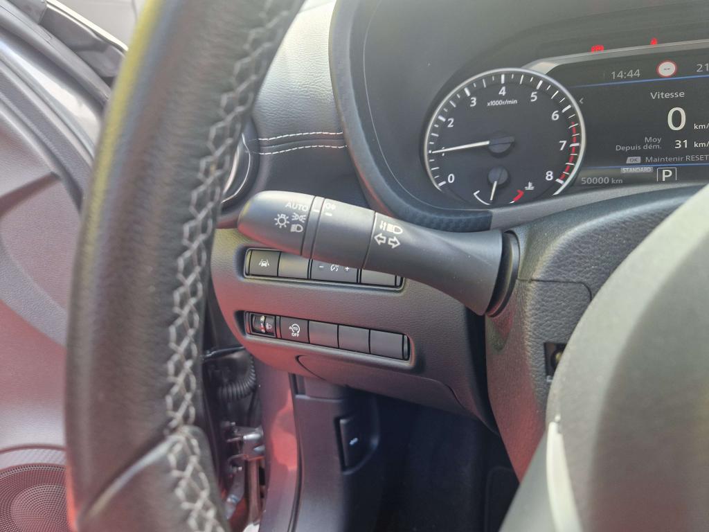 2 porte-gobelets3 appuis-tête arrière réglables6 haut-parleursABS (anti-blocage des roues), EBD (répartiteur électronique de freinage)Accès Internet sans fil Wi-FiAccoudoir central avantAide au démarrage en côteAirbags frontaux, latéraux avant et rideauxAlarme périmétriqueAllumage automatique des phares intelligentAntenne aileron de requin noireAvertisseur sonore ceintures de sécuritéBacs de rangement dans les contre-portes avant avec porte-bouteillesBanquette arrière rabattable 40/60Caméra de recul avec aide au stationnement avant et arrièreCeintures de sécurité avant ajustable en hauteurCiel de toit noirClignotants à trois clignotementsClimatisation automatiqueCombiné d'instrumentation avec écran couleur LCD-TFT 7"Commandes au volant (audio, Bluetooth, régulateur et limiteur de vitesse, contrôle de l'ordinateur de bord)Contre-portes et tableau de bord en TEP noirContrôle de pression des pneus ( TPMS )Coques de rétroviseurs noiresCorrecteur électronique de trajectoire ESPDéclenchement automatique des feux de détresseDirection assistée asservie à la vitesseEclairage d'accompagnement "Follow me Home"Eclairage de coffreEssuie-glace à déclenchement automatiqueFeux arrière LEDFeux avant à LEDFeux de route adaptatifsFeux diurnes à LEDFonction appel d'urgenceFrein à main électrique avec aide au stationnement/démarrage et fonction AutoholdFreinage actif d'urgence avec détection des piétons et cyclistesIndicateur de changement de rapportJantes en alliage bi-ton 17”Kit de réparation de pneumatiqueLève-vitres électriques avant et arrière (à impulsion coté conducteur)Liseuses à l'avant et à l'arrièreNBAS (Amplificateur de freinage d'urgence)NissanConnect ServicesPalettes au volantPare-soleil conducteur avec pochette porte-cartesPare-soleil côté conducteur et passager avec miroir de courtoisiePeinture opaque Rouge ToscanePlancher de coffre modulablePoignées de maintien pour passager avant et arrièrePoignées de portes couleur carrosseriePoignées intérieures des portes chroméesPoints d'ancrage de sièges enfant ISOFIX à l'arrièrePommeau de levier de vitesses en cuirPort USB + BluetoothPort USB arrière (uniquement pour charge 2,4A)Prévention de franchissement de ligne intelligentPrise 12VPrise AUXReconnaissance des panneaux de signalisationRéglage des sièges avantRégulateur et limiteur de vitesseRepose-genoux en TEPRétroviseur intérieur électrochromeRétroviseurs extérieurs à réglages électriques, dégivrants et rabattables automatiquementRétroviseurs extérieurs réglables électriquement avec indicateurs de changement de directionSélecteur de mode de conduite (ECO / NORMAL / SPORT)Sellerie mixte TEP/tissuServices télématiques avec accès à distance depuis un smartphoneSiège conducteur réglable en hauteurSièges avant "monoform style"Spoiler arrièreSystème "Chassis Control"Système audio radio avec écran tactile 8" avec interface personnalisable, Apple CarPlay et Android Auto,commandes vocalesSystème d'ouverture et de démarrage sans clé "Intelligent key" avec bouton Start/StopSystème Stop & StartVitres arrière teintéesVolant gainé cuirVolant réglable en hauteur et en profondeur