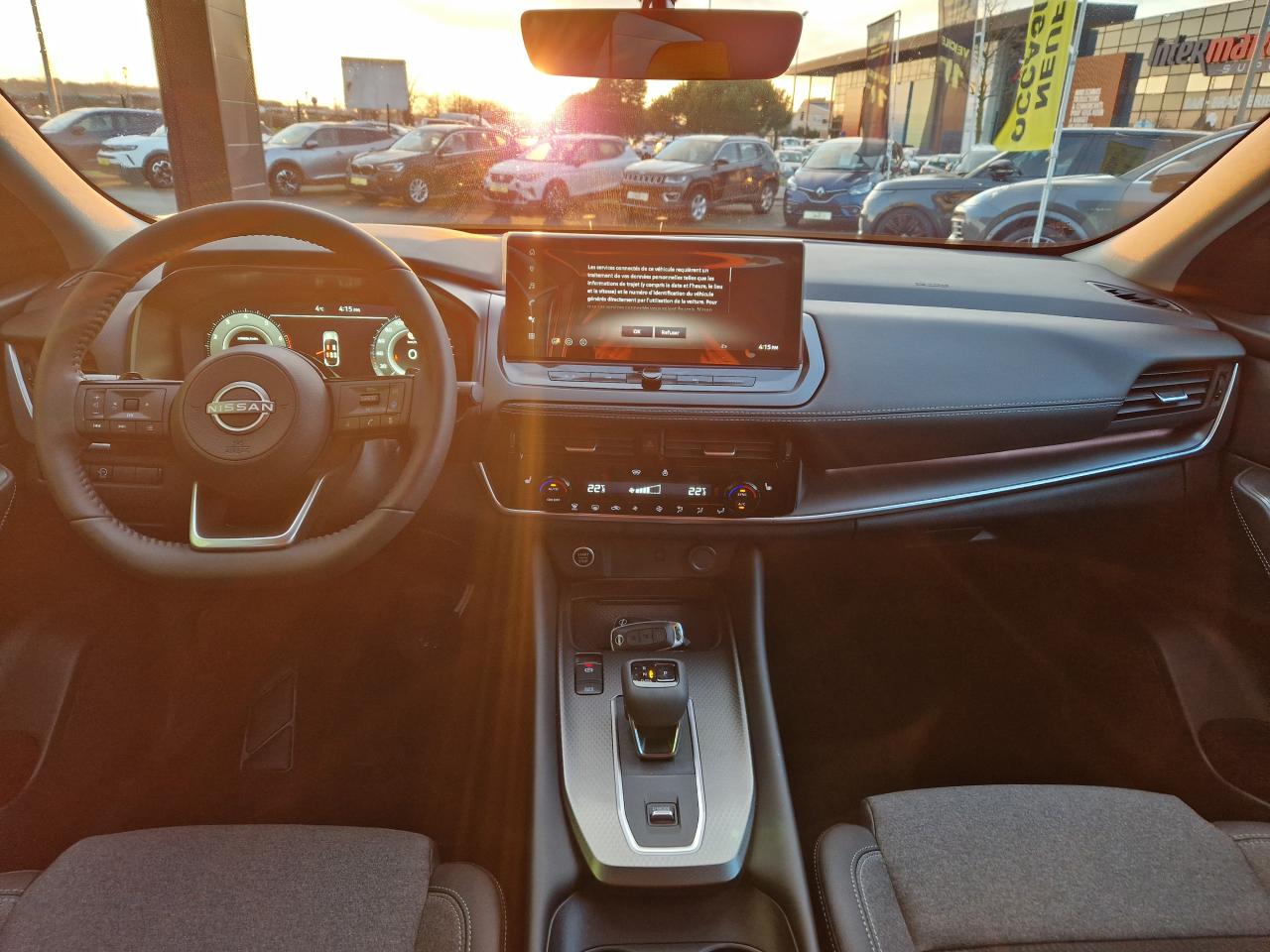 2 porte gobelets à l'avant2 ports USB-C à l'avant et à l'arrière3e feu stop à LED6 crochets de fixation dans le coffre (4 au plancher, 2 sur les côtés)ABS avec répartiteur électronique de freinage (EBD), contrôle dynamique de stabilité (ESP)Accoudoir central arrière avec deux porte-gobeletsAccoudoir central avantAirbag central avantAirbags frontaux, latéraux AV et rideauxAjustement aux limitations de vitesseAlarme périmétriqueAllumage automatique des phares intelligentAntenne de toit « aileron de requin »Avertisseur de sortie de voieAvertisseur sonore ceintures de sécuritéBanquette arrière rabattable 40/60Barres de toit longitudinales chroméesBoîte à gants éclairéeBouton d'accès rapide aux réglages des aides à la conduiteBuses de ventilation ARCache-bagages amovibleChargeur à induction pour smartphone 15WCiel de toit gris clairClignotants avant et arrières à LEDClimatisation automatique bi-zoneCombiné d'instrumentation numérique 12,3"Commandes au volant (audio, Bluetooth, régulateur et limiteur de vitesse, contrôle de l'ordinateur de bord)Compartiment pour lunettes de soleilContre-portes et console centrale en TEPDéclenchement automatique des feux de détresseDifférentiel à glissement limitéDouble port USB arrière (USB-A et USB-C)Eclairage d’ambiance personnalisable (7 points lumineux)Eclairage du coffre (2 spots)Essuie-glace à déclenchement automatiqueFeux à LED avant/arrièreFeux de route adaptatifsFeux diurnes à LEDFonction appel d'urgenceFrein à main électrique avec aide au stationnement/démarrage et fonction AutoholdFreinage d'urgence anticollision arrièreFreinage d'urgence intelligent avec détection piétons, cyclistes et intersectionsInserts de pare-chocs avant et arrière Gris satinéIntégration Apple CarPlay et Android Auto sans filJantes alliage 18"Kit de réparation de pneumatiqueLève vitres électriques avant et arrière impulsionnelsLimiteur de vitesseLiseuses LED à l’avant et à l’arrièreNBAS (Amplificateur de freinage d'urgence)NissanConnect Services avec services Google intégrésPare-chocs avant et arrière Noir matPare-soleil à l'avant avec miroir de courtoisie éclairéPeinture opaque Rouge ToscanePlancher de coffre modulablePoignées de maintien passagers avant et arrièrePoints d'ancrage de siège enfant ISOFIX à l'arrière (x2)Pommeau de levier de vitesses en cuirPortes arrière s'ouvrant à 85°Prétensionneurs de ceintures de sécuritéPrise 12V à l'avant et dans le coffreRadars de stationnement arrièreRadars de stationnement avantRéception radio numérique (DAB)Régulateur de vitesse intelligentRepose-genoux en TEPRétroviseur intérieur électrochrome sans contourRétroviseurs extérieurs rabattables automatiquementRétroviseurs extérieurs réglables, rabattables électriquement et dégivrantsSélecteur de mode de conduite (ECO / NORMAL / SPORT)Sellerie mixte TEP et tissu NoirSiège conducteur avec réglage lombaire électrique 2 positionsSiège conducteur réglable en hauteurSiège passager réglable en hauteurSurveillance des angles morts intelligentSystème "Chassis Control" (contrôle actif de trajectoire et de l'assiette)Système audio à 6 haut-parleursSystème audio radio avec écran tactile 12,3"Système d'alerte anticollision arrière intelligentSystème d'alerte prédictif anticollision frontaleSystème d'ouverture et démarrage sans clé “Intelligent Key”Système de contrôle de la pression des pneusSystème de démarrage sans clé avec interrupteur Start/StopSystème de détection de fatigue intelligentSystème de navigation NissanConnect avec services Google intégrésSystème de reconnaissance des panneaux de signalisationSystème mains libres BluetoothTechnologie Stop/StartTrappe à carburant sans bouchonVitres arrière teintéesVolant gainé cuirVolant réglable en hauteur et en profondeur