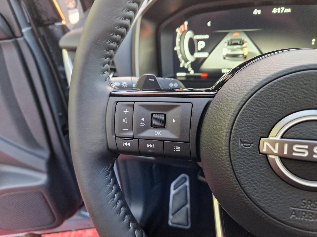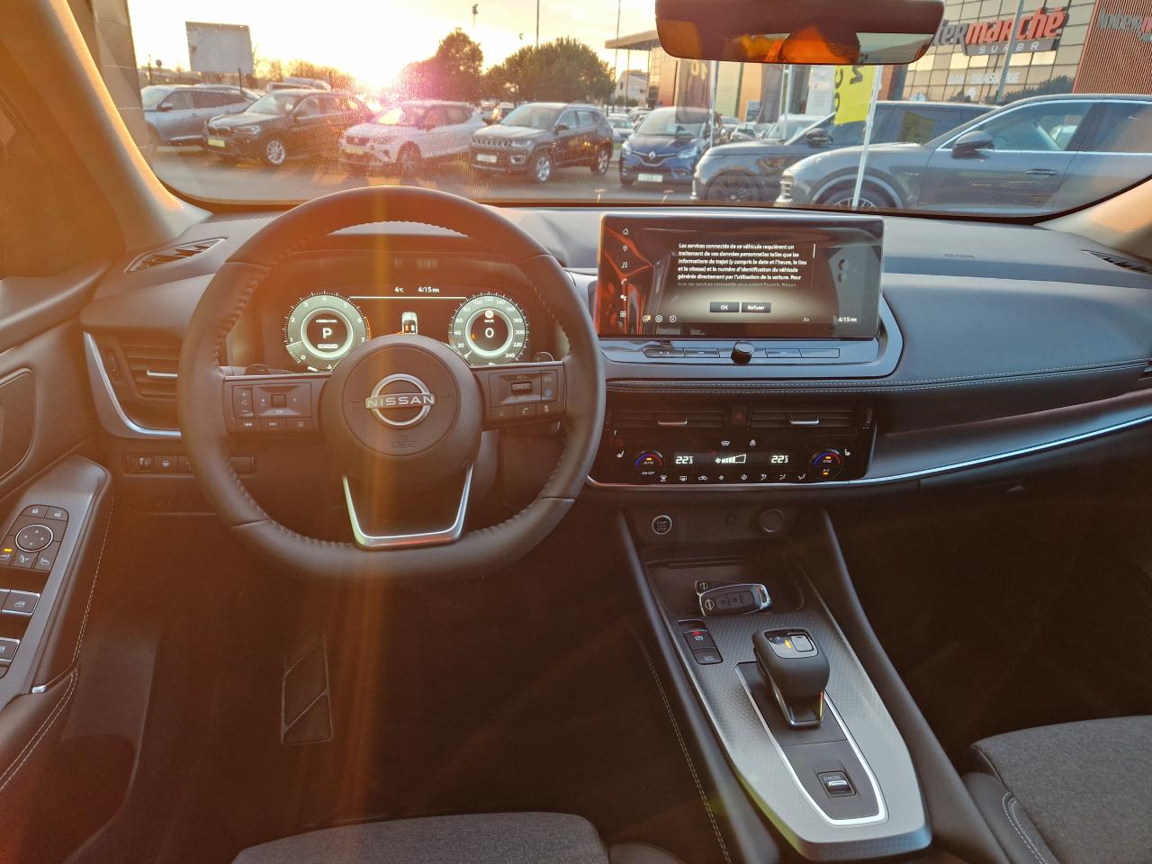 2 porte gobelets à l'avant2 ports USB-C à l'avant et à l'arrière3e feu stop à LED6 crochets de fixation dans le coffre (4 au plancher, 2 sur les côtés)ABS avec répartiteur électronique de freinage (EBD), contrôle dynamique de stabilité (ESP)Accoudoir central arrière avec deux porte-gobeletsAccoudoir central avantAirbag central avantAirbags frontaux, latéraux AV et rideauxAjustement aux limitations de vitesseAlarme périmétriqueAllumage automatique des phares intelligentAntenne de toit « aileron de requin »Avertisseur de sortie de voieAvertisseur sonore ceintures de sécuritéBanquette arrière rabattable 40/60Barres de toit longitudinales chroméesBoîte à gants éclairéeBouton d'accès rapide aux réglages des aides à la conduiteBuses de ventilation ARCache-bagages amovibleChargeur à induction pour smartphone 15WCiel de toit gris clairClignotants avant et arrières à LEDClimatisation automatique bi-zoneCombiné d'instrumentation numérique 12,3"Commandes au volant (audio, Bluetooth, régulateur et limiteur de vitesse, contrôle de l'ordinateur de bord)Compartiment pour lunettes de soleilContre-portes et console centrale en TEPDéclenchement automatique des feux de détresseDifférentiel à glissement limitéDouble port USB arrière (USB-A et USB-C)Eclairage d’ambiance personnalisable (7 points lumineux)Eclairage du coffre (2 spots)Essuie-glace à déclenchement automatiqueFeux à LED avant/arrièreFeux de route adaptatifsFeux diurnes à LEDFonction appel d'urgenceFrein à main électrique avec aide au stationnement/démarrage et fonction AutoholdFreinage d'urgence anticollision arrièreFreinage d'urgence intelligent avec détection piétons, cyclistes et intersectionsInserts de pare-chocs avant et arrière Gris satinéIntégration Apple CarPlay et Android Auto sans filJantes alliage 18"Kit de réparation de pneumatiqueLève vitres électriques avant et arrière impulsionnelsLimiteur de vitesseLiseuses LED à l’avant et à l’arrièreNBAS (Amplificateur de freinage d'urgence)NissanConnect Services avec services Google intégrésPare-chocs avant et arrière Noir matPare-soleil à l'avant avec miroir de courtoisie éclairéPeinture opaque Rouge ToscanePlancher de coffre modulablePoignées de maintien passagers avant et arrièrePoints d'ancrage de siège enfant ISOFIX à l'arrière (x2)Pommeau de levier de vitesses en cuirPortes arrière s'ouvrant à 85°Prétensionneurs de ceintures de sécuritéPrise 12V à l'avant et dans le coffreRadars de stationnement arrièreRadars de stationnement avantRéception radio numérique (DAB)Régulateur de vitesse intelligentRepose-genoux en TEPRétroviseur intérieur électrochrome sans contourRétroviseurs extérieurs rabattables automatiquementRétroviseurs extérieurs réglables, rabattables électriquement et dégivrantsSélecteur de mode de conduite (ECO / NORMAL / SPORT)Sellerie mixte TEP et tissu NoirSiège conducteur avec réglage lombaire électrique 2 positionsSiège conducteur réglable en hauteurSiège passager réglable en hauteurSurveillance des angles morts intelligentSystème "Chassis Control" (contrôle actif de trajectoire et de l'assiette)Système audio à 6 haut-parleursSystème audio radio avec écran tactile 12,3"Système d'alerte anticollision arrière intelligentSystème d'alerte prédictif anticollision frontaleSystème d'ouverture et démarrage sans clé “Intelligent Key”Système de contrôle de la pression des pneusSystème de démarrage sans clé avec interrupteur Start/StopSystème de détection de fatigue intelligentSystème de navigation NissanConnect avec services Google intégrésSystème de reconnaissance des panneaux de signalisationSystème mains libres BluetoothTechnologie Stop/StartTrappe à carburant sans bouchonVitres arrière teintéesVolant gainé cuirVolant réglable en hauteur et en profondeur