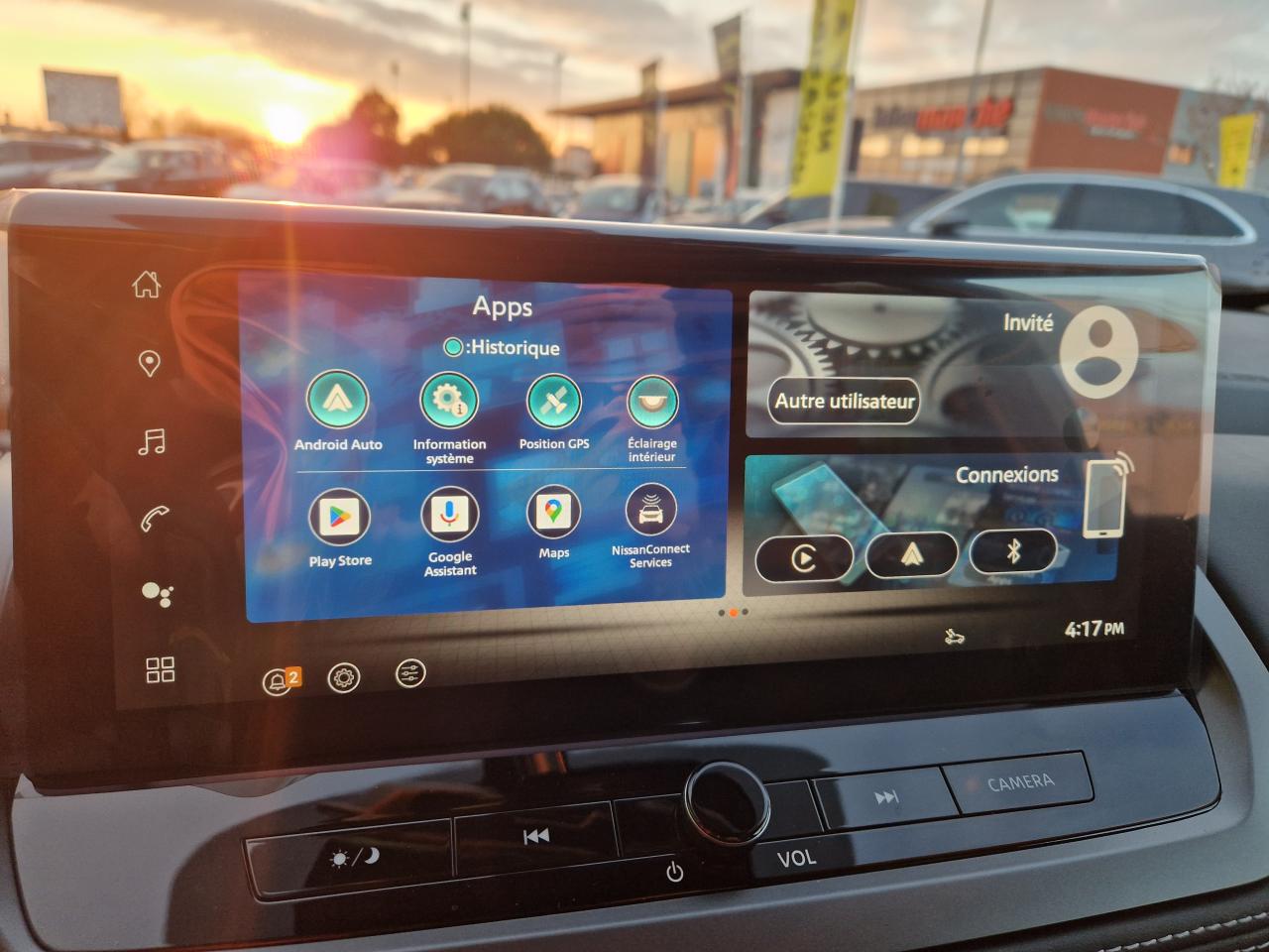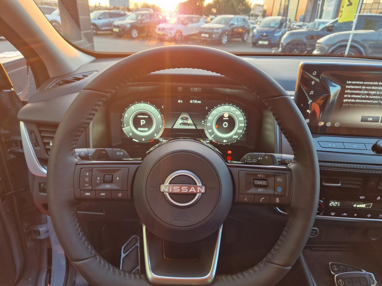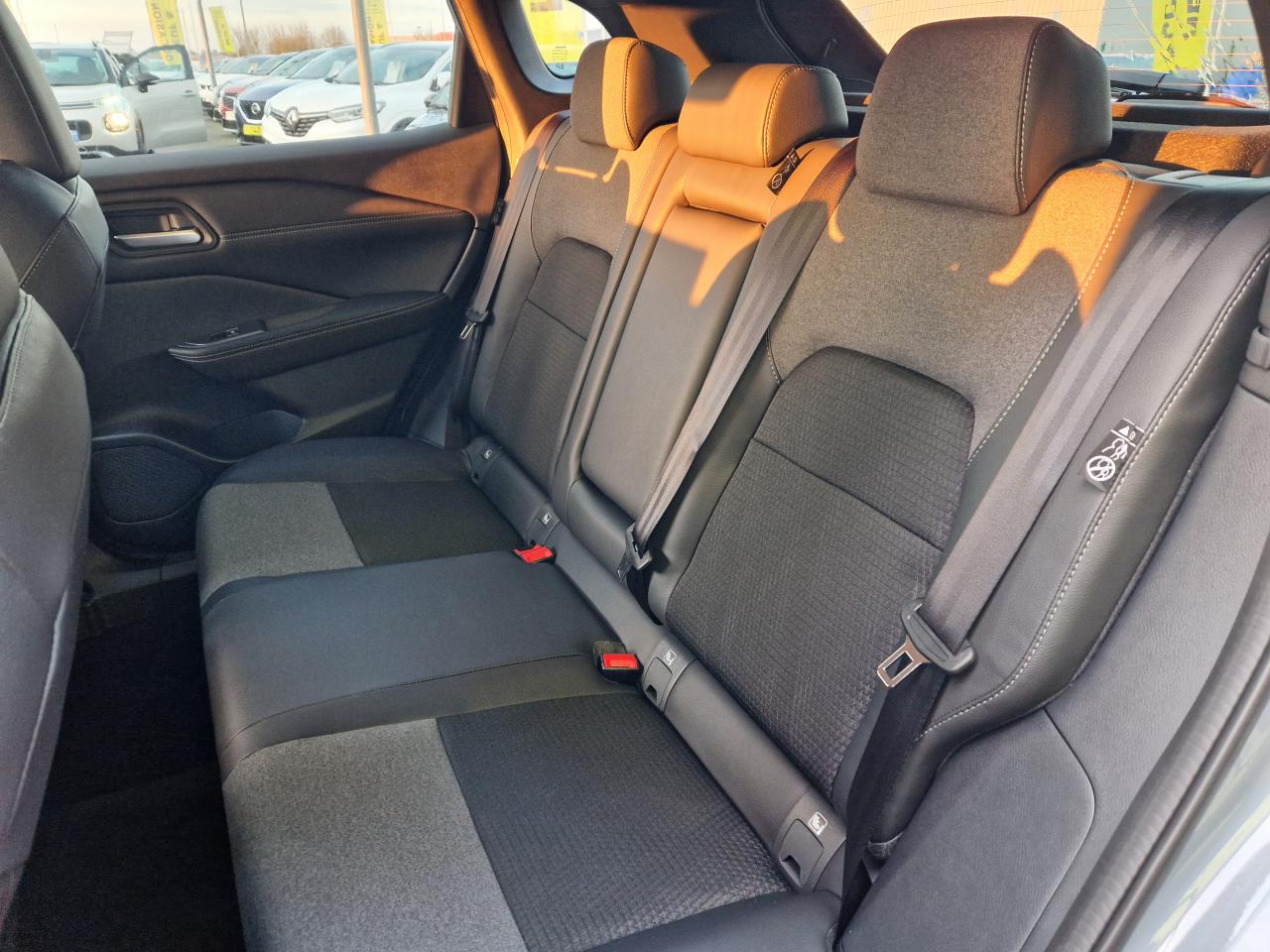 2 porte gobelets à l'avant2 ports USB-C à l'avant et à l'arrière3e feu stop à LED6 crochets de fixation dans le coffre (4 au plancher, 2 sur les côtés)ABS avec répartiteur électronique de freinage (EBD), contrôle dynamique de stabilité (ESP)Accoudoir central arrière avec deux porte-gobeletsAccoudoir central avantAirbag central avantAirbags frontaux, latéraux AV et rideauxAjustement aux limitations de vitesseAlarme périmétriqueAllumage automatique des phares intelligentAntenne de toit « aileron de requin »Avertisseur de sortie de voieAvertisseur sonore ceintures de sécuritéBanquette arrière rabattable 40/60Barres de toit longitudinales chroméesBoîte à gants éclairéeBouton d'accès rapide aux réglages des aides à la conduiteBuses de ventilation ARCache-bagages amovibleChargeur à induction pour smartphone 15WCiel de toit gris clairClignotants avant et arrières à LEDClimatisation automatique bi-zoneCombiné d'instrumentation numérique 12,3"Commandes au volant (audio, Bluetooth, régulateur et limiteur de vitesse, contrôle de l'ordinateur de bord)Compartiment pour lunettes de soleilContre-portes et console centrale en TEPDéclenchement automatique des feux de détresseDifférentiel à glissement limitéDouble port USB arrière (USB-A et USB-C)Eclairage d’ambiance personnalisable (7 points lumineux)Eclairage du coffre (2 spots)Essuie-glace à déclenchement automatiqueFeux à LED avant/arrièreFeux de route adaptatifsFeux diurnes à LEDFonction appel d'urgenceFonction de verrouillage / déverrouillage à l'approche du véhiculeFrein à main électrique avec aide au stationnement/démarrage et fonction AutoholdFreinage d'urgence anticollision arrièreFreinage d'urgence intelligent avec détection piétons, cyclistes et intersectionsInserts de pare-chocs avant et arrière Gris satinéIntégration Apple CarPlay et Android Auto sans filJantes alliage 18"Kit de réparation de pneumatiqueLève vitres électriques avant et arrière impulsionnelsLimiteur de vitesseLiseuses LED à l’avant et à l’arrièreNBAS (Amplificateur de freinage d'urgence)Nissan AVM 3D - Vision Intelligente à 360°NissanConnect Services avec services Google intégrésPare-chocs avant et arrière Noir matPare-soleil à l'avant avec miroir de courtoisie éclairéPeinture métallisée spéciale Rouge FujiPlancher de coffre modulablePoignées de maintien passagers avant et arrièrePoints d'ancrage de siège enfant ISOFIX à l'arrière (x2)Pommeau de levier de vitesses en cuirPortes arrière s'ouvrant à 85°Prétensionneurs de ceintures de sécuritéPrise 12V à l'avant et dans le coffreRadars de stationnement arrièreRadars de stationnement avantRéception radio numérique (DAB)Régulateur de vitesse intelligentRepose-genoux en TEPRétroviseur intérieur électrochrome sans contourRétroviseurs extérieurs rabattables automatiquementRétroviseurs extérieurs réglables, rabattables électriquement et dégivrantsSélecteur de mode de conduite (ECO / NORMAL / SPORT)Sellerie mixte TEP et tissu NoirSiège conducteur avec réglage lombaire électrique 2 positionsSiège conducteur réglable en hauteurSiège passager réglable en hauteurSurveillance des angles morts intelligentSystème "Chassis Control" (contrôle actif de trajectoire et de l'assiette)Système audio à 6 haut-parleursSystème audio radio avec écran tactile 12,3"Système d'alerte anticollision arrière intelligentSystème d'alerte prédictif anticollision frontaleSystème d'ouverture et démarrage sans clé “Intelligent Key”Système de contrôle de la pression des pneusSystème de démarrage sans clé avec interrupteur Start/StopSystème de détection de fatigue intelligentSystème de navigation NissanConnect avec services Google intégrésSystème de reconnaissance des panneaux de signalisationSystème mains libres BluetoothTechnologie Stop/StartTrappe à carburant sans bouchonVitres arrière teintéesVolant gainé cuirVolant réglable en hauteur et en profondeur