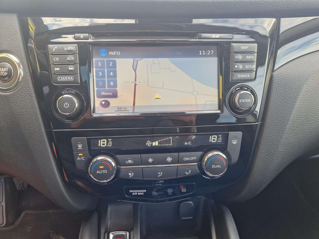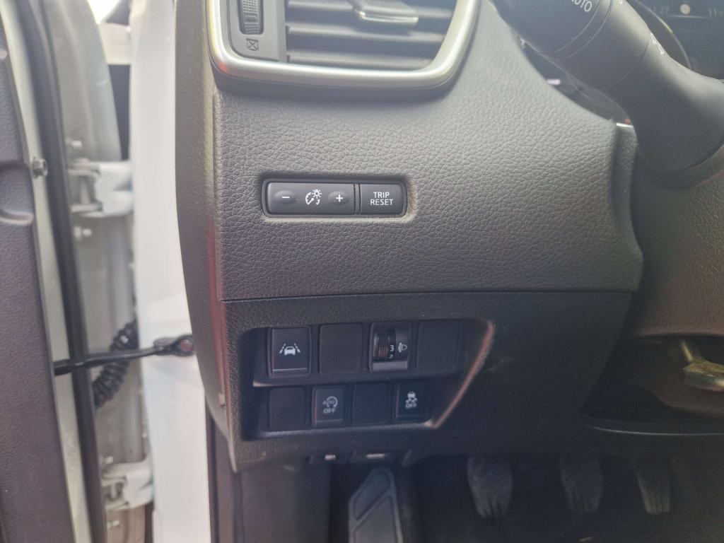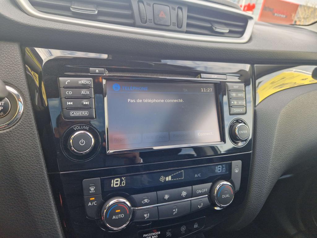 ABS (Antiblocage de roues)Accoudoir central arrière avec porte-gobeletAccoudoir central avantAide au démarrage en côteAide au stationnement avant/arrièreAirbag passager déconnectableAirbags frontaux, latéraux AV, rideauxAllumage automatique des projecteursBanquette arrière rabattable 40/60Ceintures de sécurité arrière 3 points avec enrouleurCeintures de sécurité avant 3 points avec prétensionneur et limiteur d'effortClimatisation automatique bi-zoneCommandes au volant (audio, Bluetooth, régulateur et limiteur de vitesse, contrôle de l'ordinateur de bord)Contour des vitres latérales chroméContrôle de pression des pneus ( TPMS )Démarrage avec bouton START / STOPDirection assistée électrique ajustable (mode Sport ou Normal)Eclairage d'ambiance intérieurESP (Correcteur électronique de trajectoire)Essuie-glace à déclenchement automatiqueFermeture et ouverture centralisées des portes à distanceFeux antibrouillard avant avec cerclage chroméFeux diurnes à LED avec signature lumineuseFrein de parking électriqueJantes alliage 18"Kit de réparation pneumatiqueNBAS (Amplificateur de freinage d'urgence)Nissan AVM - Vision 360°Nissan Safety ShieldNissanConnectOrdinateur de bord avec écran TFT couleur HD 5"Pare-soleil côté conducteur et passager avec miroir de courtoisiePhares halogènesPlancher de coffre modulablePoignées de portes couleur carrosseriePoints d'ancrage de siège enfant ISOFIX à l'arrière (x2)Pommeau de levier de vitesses et volant gainés de cuirPort USB dans accoudoir central avantPrise auxiliaire Jack 3.5" dans accoudoir central avantPrises 12 V dans l'accoudoir central avantProtection de bas de caisse noireRégulateur et limiteur de vitesseRépartiteur électronique de freinage (EBD)Rétroviseurs extérieurs électriques et dégivrantsRétroviseurs extérieurs rabattables électriquementRétroviseurs extérieurs rabattables automatiquementSellerie Tissu GraphiteSiège avant anti-fatigueSiège conducteur avec réglage en hauteurSiège passager réglage en hauteurSièges avant avec réglage lombaireSystème "Chassis Control"Système anti-démarrageSystème audio radio / CD 6 haut-parleursSystème d'ouverture et de démarrage sans clé "Intelligent Key"Système Stop & StartVitres électriques à l'arrièreVitres électriques à l'avant (avec mode impulsionnel côté conducteur)Vitres latérales arrière et vitre de hayon surteintéesVolant réglable en hauteur et en profondeur