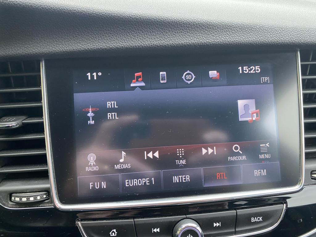 5 ceintures de sécurité 3 points à enrouleur avant et arrière (réglable en hauteur à l'avant)Accoudoir central avant sur siège conducteurAccoudoirs latéraux avant et arrièreAide au démarrage en côteAide au stationnement avant/arrièreAirbags Opel conducteur et passagerAirbags Opel latéraux sur sièges avantAirbags Opel rideauxAllumage automatique des phares avec détecteur de tunnelAppuis-tête avant réglablesBacs de rangement intégrés aux portes avant et arrièreBoîte à gants éclairéeCache-bagages rigideCeintures de sécurité avant avec double prétensionneurs et limiteur d'effortClé pliante avec télécommande intégréeClignotants latéraux additionnelsClimatisation automatique bi-zone avec filtre anti-pollen et détecteur de qualité d'airCompte-tours électroniqueCompteur kilométrique et totalisateur journalier à affichage digitalContrôle électronique de trajectoire ESP+Contrôle de pression des pneus ( TPMS )Contrôle electronique de stabilité (ESC) intégrant le contrôle de traction (TC), le contrôle de freinage en courbe (CBC), le contrôle de couple en courbe (CTC), l'assistance au freinage d'urgence (BAS) et la compensation hydraulique de l'évDossier de banquette arrière rabattable asymétriquement 1/3 - 2/3Eclairage du coffreEssuie-glace arrière à balayage intermittentFeux de jour à LEDFixations Isofix sur les deux sièges latéraux arrièreJantes alliage 18" à 10 branchesJauge à carburant avec alerte miniKit anti-crevaisonLève vitres électriques avant et arrière impulsionnelsLigne de vitrage chroméeLunette arrière dégivranteOnStar avec point d’accès Wi-Fi 4GOrdinateur de bord au centre du bloc d'instrumentation muni d'un écran digital 3.5'' TFT monochromePédalier rétractable en cas de choc frontal (PRS)Pack VisibilitéPare-soleil orientable avec miroirs de courtoisiePeinture laquéePhares antibrouillard avant intégrésPlancher plat avec espace de rangement sous plancherPoignées de maintien pour passager avant et arrièrePoignées de portes couleur carrosseriePossibilité de déconnecter l'airbag du siège passager avantPrise 12 V à l'arrièrePrise 12V à l'avantR 4.0 IntelliLink : écran tactile 7'', radio, USB, compatible Apple CarPlay et Android Auto, Bluetooth mains libres, audio streamingRéglage électrique de l'assiette des pharesRégulateur et limiteur de vitesseRétroviseurs extérieurs couleur carrosserieRétroviseurs extérieurs rabattables électriquementRétroviseurs extérieurs, asphérique côté conducteur, dégivrants à réglage électriqueRails de toitRappel de bouclage de ceinture conducteur, passagers avant et arrièreSellerie mixte Rhombus anthraciteSiège conducteur réglable dans 4 directions dont réglage en hauteurSiège passager réglable dans 2 directionsSpots de lecture à l'avantStructure de sécurité passive avec cellule de survie pour les passagers en acier haute résistance et zone de déformation à absorption d'énergieSystème antiblocage des roues (ABS électronique) avec répartition électronique du freinage (EBD)Tiroir de rangement sous siège passagerVerrou électronique Opel (antidémarrage)Verrouillage centralisé (portes, coffre et trappe à carburant) à télécommandeVitres latérales et lunette arrière surteintéesVitres teintéesVolant multifonction 3 branches gaîné de cuir avec insert alu brossé, réglable en hauteur et en profondeur