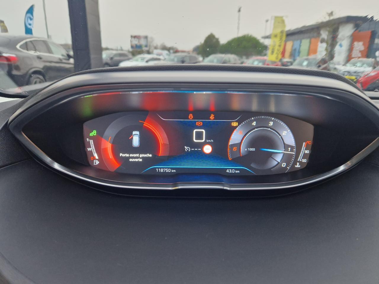 2 spots de lecture à l'arrièreABS avec répartiteur électronique de freinage (REF) et aide au freinage d'urgence (AFU)Accès et démarrage mains-libresAccoudoir central avant à ouverture papillon, avec compartiment de rangement éclairé et réfrigérableAide graphique et sonore au stationnement arrièreAir conditionné automatique bi-zone avec aérateurs aux places arrièreAirbags frontaux conducteur et passager adaptatifsAirbags latéraux conducteur et passager avantAirbags rideaux de tête aux places avant et arrièreAlerte de temps de conduiteAppuis-tête à sécurité optimisée réglables en hauteur sur les sièges conducteur et passager avant ainsi que sur les places latérales arrièresBandeau de pare-choc arrière chroméBanquette rabattable 1/3 - 2/3 (modularité 'Magic Flat' et commandes dans le coffre) avec accoudoir et trappe à skisBarres de toit longitudinales profilées en aluminiumBoîte à gants floquée et éclairéeCalandre avec jonc périphérique chrome brillant, damier chroméCeintures avant à 3 points, réglables en hauteur, avec prétensionneurs et limiteurs d'effortCeintures de sécurité arrière trois points à enrouleur (x3), avec prétensionneurs et limiteurs d'effort aux places latéralesCommande de verrouillage à distance (deux plips)Contrôle dynamique de stabilité CDS avec antipatinage électronique ASRDécors de planche de bord et panneaux de portes en maille 'Brumeo'Décors intérieurs (baguettes de planche de bord et panneaux de portes, enjoliveur de console) chromésDétection de sous-gonflage indirecteDeux porte-gobelets intégrés à la console centraleDirection assistée électrique, avec colonne de direction réglable en hauteur et profondeur (mécanique)Enjoliveurs d'arc de pavillon en inoxEnjoliveurs en inox sur les protecteurs de bas de portesEssuie-glace arrière avec déclenchement automatique en marche arrièreEssuie-vitre avant avec système de lavage 'Magic Wash'Filets aumônières au dos des sièges avantFixations pour trois sièges enfants suivant norme ISOFIX aux places passager avant et latérales arrièreFonction Mirror ScreenFrein de stationnement électrique avec aide au démarrage en penteHayon mains libres : volet de coffre motorisé avec accès mains libresIndicateur de rapportInserts d'ailes avant chromésJantes alliage 18" 'Detroit' bi-ton diamantéesKit de dépannage pneumatiqueLève-vitres électriques avant et arrière, séquentiels et antipincementLunette arrière chauffante avec antennes sérigraphiéesMiroirs de courtoisie éclairésPack City 1Pack Eclairage d'ambiancePack Safety PlusPack VisibilitéPassages de roues rapportés noirsPeugeot Connect : Navigation 3D connectée avec reconnaissance vocale + PEUGEOT Connect SOS & AssistancePeugeot i-Cockpit Amplify: choix de 2 ambiances paramétrablesPeugeot i-Cockpit combiné tête haute numérique reconfigurable, écran tactile capacitif 8" et volant compact multi-fonctionsPlafonnier avant avec spots de lecture (x2) et plafonnier arrière à extinction temporiséePlancher de coffre deux positionsPoignées de maintien (x4) rétractables avec frein (crochets pour cintres aux places arrière)Prise 12V (x3) : à l'avant, à l'arrière et dans le coffrePrise USBProjecteurs 'Peugeot Full LED Technology'Projecteurs antibrouillard halogènes avec enjoliveurs chromésRadio 6 HP, compatible MP3 et connectivité Bluetooth (audio streaming, kit mains libres), avec commandes au volantRecharge smartphone sans filReconnaissance des panneaux de vitesse et préconisationRégulateur et limiteur de vitesseRétroviseurs extérieur électriques et dégivrantsRétroviseurs extérieurs couleur carrosserieRétroviseurs extérieurs rabattables électriquement avec éclairage d'approche à LEDSabot de pare-choc avant gris métalliséSécurité enfant électrique des vitres arrièreSellerie TEP & Tissu 'Piedimonte' ou 'Evron'Siège conducteur à réglage lombaireSiège conducteur réglage en hauteurSiège passager à réglage manuel en hauteurSiège passager avant avec mise en tabletteTeinte de caisse Gris HurricaneToggle Switches' chromés (touches 'piano' d'activation des fonctions de l'écran tactile)Verrouillage automatique de tous les ouvrants en roulantVitres latérales et lunette arrière surteintéesVolant cuir pleine fleur