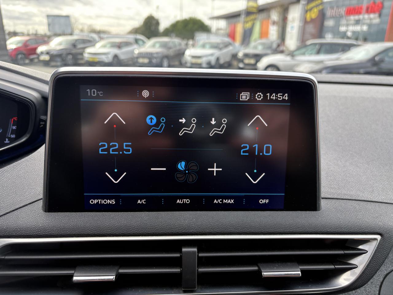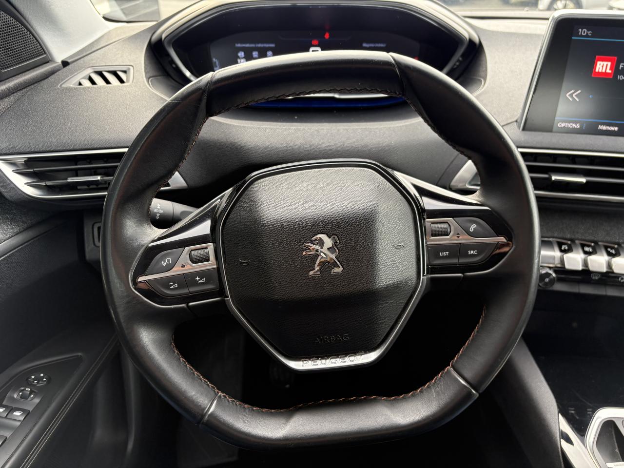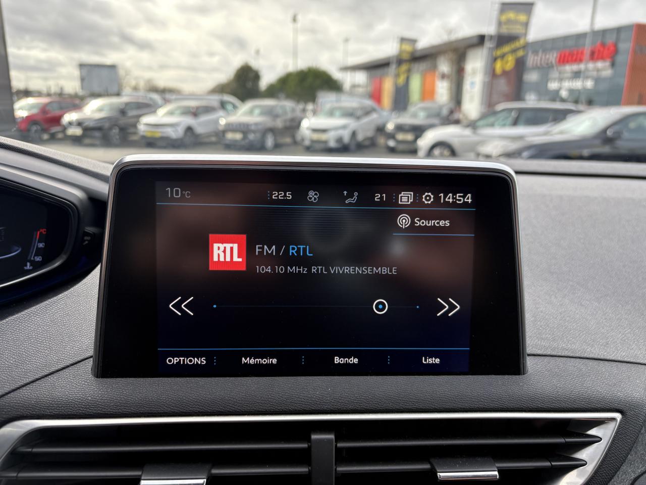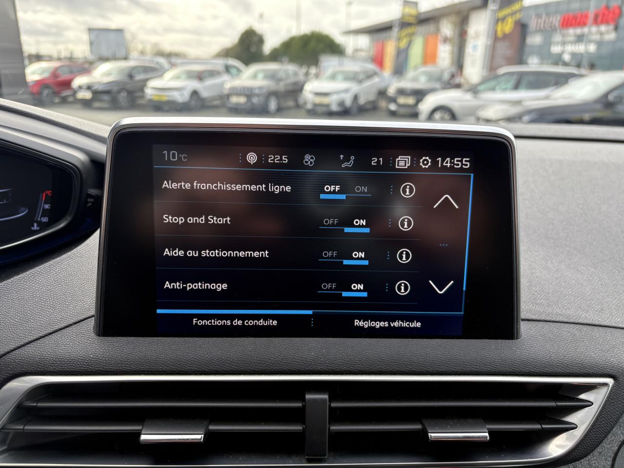 2 spots de lecture à l'arrière4 poignées de maintien rétractables (passagers avant et arrière) et 2 crochets portemanteau à l'arrièreABS avec répartiteur électronique de freinage (REF) et aide au freinage d'urgence (AFU)Accoudoir central avant à ouverture papillon, avec compartiment de rangement éclairé et réfrigérableAide graphique et sonore au stationnement arrièreAide graphique et sonore au stationnement avantAir conditionné automatique bi-zone avec aérateurs aux places arrièreAirbags frontaux conducteur et passager adaptatifsAirbags latéraux conducteur et passager avantAirbags rideaux de tête aux places avant et arrièreAlerte de franchissement Involontaire de ligneAlerte de temps de conduiteAppuis-tête à sécurité optimisée réglables en hauteur sur les sièges conducteur et passager avant ainsi que sur les places arrièresBandeau de pare-choc arrière chroméBanquette rabattable 1/3 - 2/3 (modularité 'Magic Flat' et commandes dans le coffre) avec accoudoir et trappe à skisBoîte à gants floquée et éclairéeCalandre avec jonc périphérique et facettes chromésCeintures avant à 3 points, réglables en hauteur, avec prétensionneurs et limiteurs d'effortCeintures de sécurité arrière trois points à enrouleur (x3), avec prétensionneurs et limiteurs d'effort aux places latéralesCommande de verrouillage à distance (deux plips)Contrôle dynamique de stabilité CDS avec antipatinage électronique ASRDécors de planche de bord et panneaux de portes aspect carboneDécors intérieurs (baguettes de planche de bord et panneaux de portes, enjoliveur de console) chromésDétection de sous-gonflage indirecteDeux porte-gobelets intégrés à la console centraleDirection assistée électrique, avec colonne de direction réglable en hauteur et profondeur (mécanique)Eclairage intérieur à LEDEnjoliveurs d'arc de pavillon en inoxEssuie-glace arrière avec déclenchement automatique en marche arrièreEssuie-vitre avant avec système de lavage 'Magic Wash'Filets aumônières au dos des sièges avantFixations pour trois sièges enfants suivant norme ISOFIX aux places passager avant et latérales arrièreFonction Mirror ScreenFrein de stationnement électrique avec aide au démarrage en penteIndicateur de rapportInserts d'ailes avant chromésJantes alliage 17" 'Chicago'Kit de dépannage pneumatiqueLève-vitres électriques avant et arrière, séquentiels et antipincementLunette arrière chauffante avec antennes sérigraphiéesPack VisibilitéPassages de roues rapportés noirsPeugeot ConnectPeugeot i-Cockpit combiné tête haute numérique reconfigurable, écran tactile capacitif 8" et volant compact multi-fonctionsPlafonnier avant avec spots de lecture (x2) et plafonnier arrière à extinction temporiséePlancher de coffre deux positionsPneus 215/65 R17 VPrise USBPrises 12V (x 3)Projecteurs antibrouillard halogènes avec enjoliveurs chromésProjecteurs halogènes à l’avant avec feux diurnes à LED intégrés dans le bloc optiqueRégulateur et limiteur de vitesseRétroviseurs extérieur électriques et dégivrantsRétroviseurs extérieurs couleur carrosserieRétroviseurs extérieurs rabattables électriquement avec éclairage d'approche à LEDRadio 6 HP, compatible MP3 et connectivité Bluetooth (audio streaming, kit mains libres), avec commandes au volantReconnaissance des panneaux de vitesse et préconisationSellerie Tissu 'Meco'Siège conducteur réglage en hauteurSiège passager à réglage manuel en hauteurTeinte de caisse Gris HurricaneToggle Switches' chromés (touches 'piano' d'activation des fonctions de l'écran tactile)Verrouillage automatique de tous les ouvrants en roulantVitres électriques AR avec sécurité enfantVitres latérales et lunette arrière surteintéesVolant cuir pleine fleur