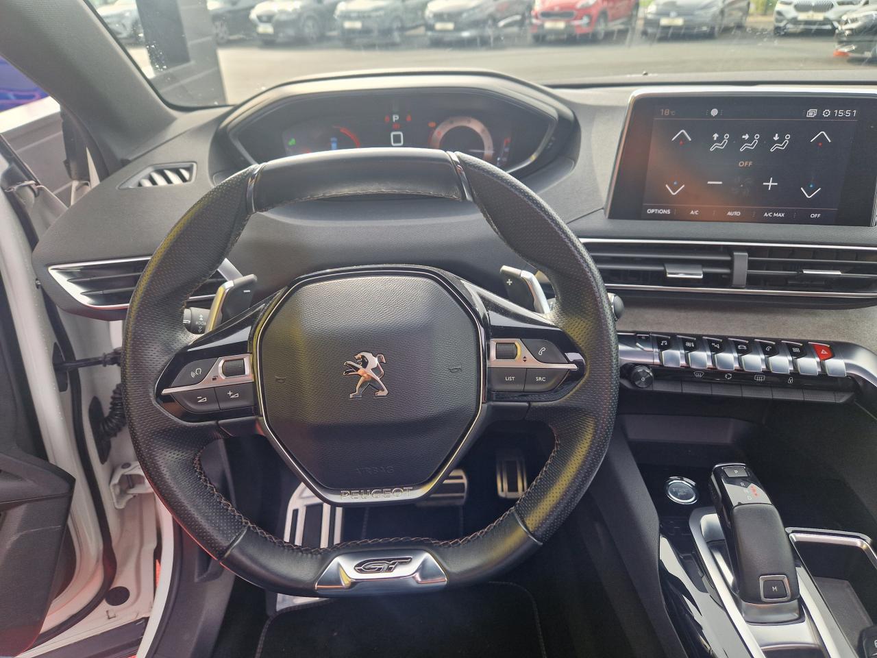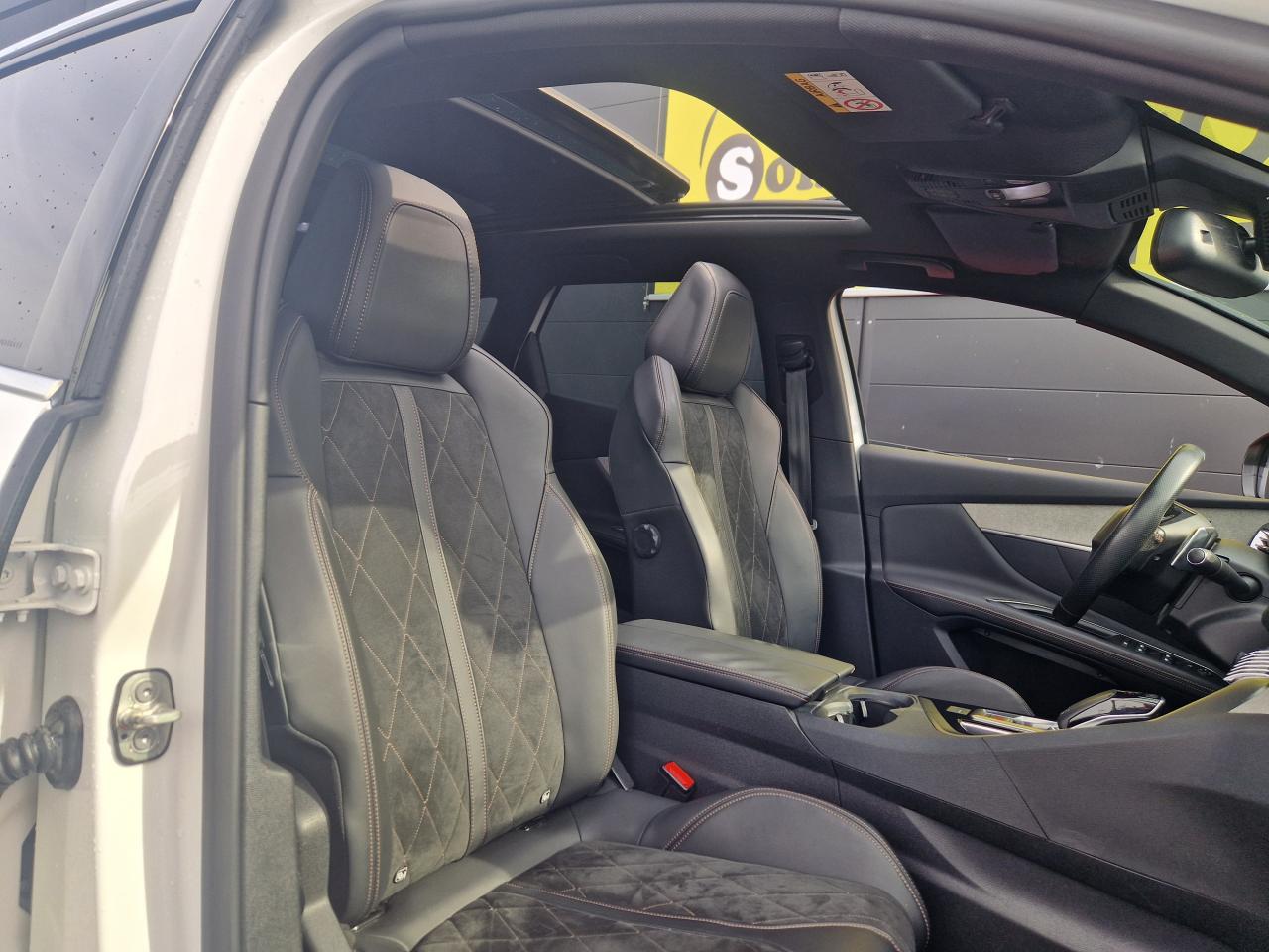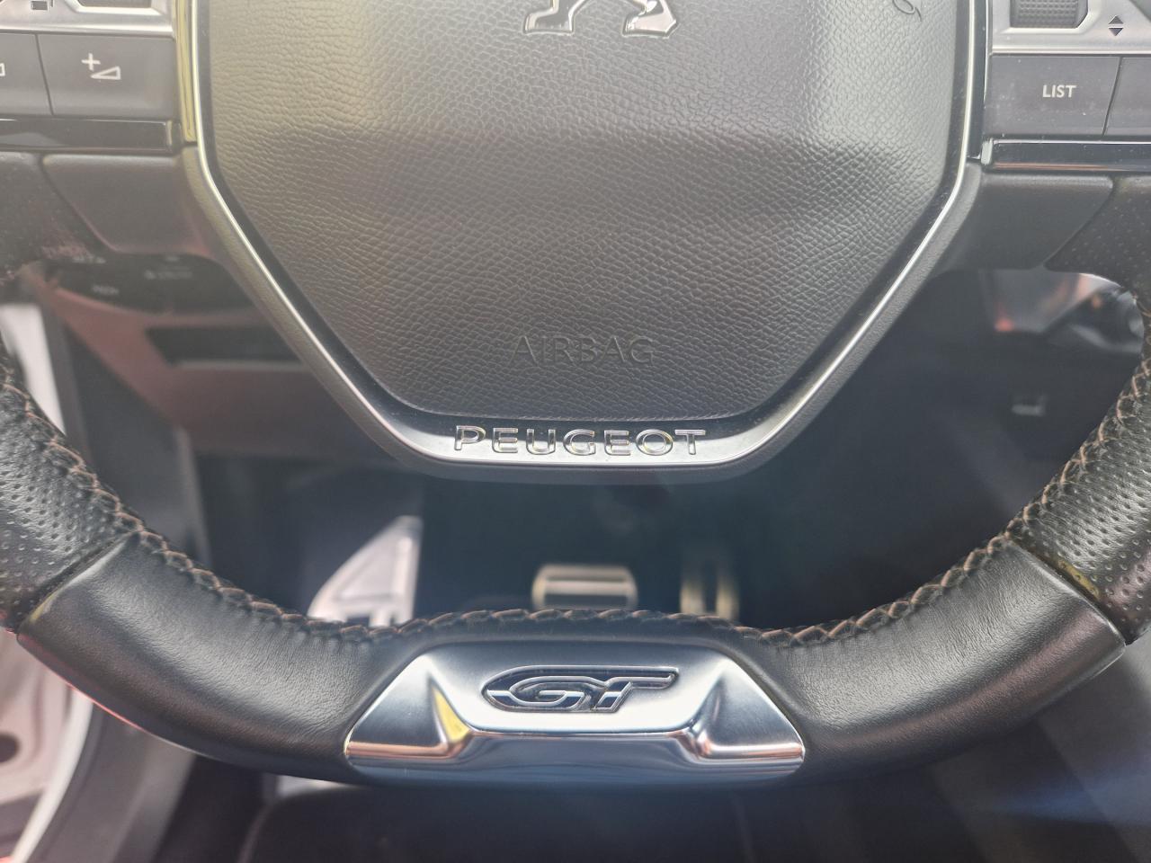 2 spots de lecture à l'arrière4 poignées de maintien rétractables (passagers avant et arrière) et 2 crochets portemanteau à l'arrièreABS avec répartiteur électronique de freinage (REF) et aide au freinage d'urgence (AFU)Accès et démarrage mains-libresAccoudoir central avant à ouverture papillon, avec compartiment de rangement éclairé et réfrigérableAide graphique et sonore au stationnement arrièreAir conditionné automatique bi-zone avec aérateurs aux places arrièreAirbags frontaux conducteur et passager adaptatifsAirbags latéraux conducteur et passager avantAirbags rideaux de tête aux places avant et arrièreAlerte de temps de conduiteAppuis-tête à sécurité optimisée réglables en hauteur sur les sièges conducteur et passager avant ainsi que sur les places arrièresBandeau de pare-choc arrière chroméBanquette rabattable 1/3 - 2/3 (modularité 'Magic Flat' et commandes dans le coffre) avec accoudoir et trappe à skisBarres de seuils de portes avant en inoxBarres de toit longitudinales profilées en aluminiumBoîte à gants floquée et éclairéeBoîtiers de rétroviseurs extérieurs chromésCalandre avec jonc périphérique chrome brillant et satiné, damier chromé et lettrage Peugeot noirCanules d'échappement chroméesCeintures avant à 3 points, réglables en hauteur, avec prétensionneurs et limiteurs d'effortCeintures de sécurité arrière trois points à enrouleur (x3), avec prétensionneurs et limiteurs d'effort aux places latéralesCommande de verrouillage à distance (deux plips)Contrôle dynamique de stabilité CDS avec antipatinage électronique ASRDécors de planche de bord et panneaux de portes 'Grey Oak' (bois véritable chêne gris)Décors intérieurs (baguettes de planche de bord et panneaux de portes, enjoliveur de console, 'Toggle Switches') chrome acierDétection de sous-gonflage indirecteDeux porte-gobelets intégrés à la console centraleDirection assistée électrique, avec colonne de direction réglable en hauteur et profondeur (mécanique)Eclairage intérieur à LEDEcrous antivolEnjoliveurs d'arc de pavillon en inoxEnjoliveurs en inox sur les protecteurs de bas de portesEssuie-glace arrière avec déclenchement automatique en marche arrièreEssuie-vitre avant avec système de lavage 'Magic Wash'Filets aumônières au dos des sièges avantFixations pour trois sièges enfants suivant norme ISOFIX aux places passager avant et latérales arrièreFonction Mirror ScreenFrein de stationnement électrique avec aide au démarrage en penteHabitacle et ciel de pavillon Noir MistralHayon mains libres : volet de coffre motorisé avec accès mains libresIndicateur de rapportInserts d'ailes avant chromésJantes alliage 19" 'Boston' bi-ton diamantées et vernis matJoncs de vitres latérales en inoxKit de dépannage pneumatiqueLève-vitres électriques avant et arrière, séquentiels et antipincementLunette arrière chauffante avec antennes sérigraphiéesMiroirs de courtoisie éclairésPédalier et repose-pied conducteur en aluminiumPack City 1Pack Eclairage d'ambiancePack Safety PlusPack VisibilitéPassages de roues rapportés noirs élargisPeugeot ConnectPeugeot i-Cockpit Amplify: choix de 2 ambiances paramétrablesPeugeot i-Cockpit combiné tête haute numérique reconfigurable, écran tactile capacitif 8" et volant compact multi-fonctionsPlafonnier avant avec spots de lecture (x2) et plafonnier arrière à extinction temporiséePlanche de bord surpiquéePlancher de coffre deux positionsPneus 235/50 R19 VPrise USBPrises 12V (x 3)Projecteurs 'Peugeot Full LED Technology'Régulateur et limiteur de vitesseRétroviseurs extérieur électriques et dégivrantsRétroviseurs extérieurs rabattables électriquement avec 'Lion Spotlight'Radio 6 HP, bi-tuner compatible MP3 et connectivité Bluetooth (audio streaming, kit mains libres), avec commandes au volant, écran tactile capacitif 8"Reconnaissance des panneaux de vitesse et préconisationSabot de pare-choc avant gris métalliséSellerie TEP & AlcantaraSiège conducteur à réglage lombaireSiège conducteur réglage en hauteurSiège passager à réglage manuel en hauteurSiège passager avant avec mise en tabletteSurtapis aux places avant et arrièreTeinte de caisse Gris HurricaneToggle Switches' chromés (touches 'piano' d'activation des fonctions de l'écran tactile)Toit 'Black Diamond' (toit Noir Perla Nera)Verrouillage automatique de tous les ouvrants en roulantVitres électriques AR avec sécurité enfantVitres latérales et lunette arrière surteintéesVolant cuir pleine fleur perforé avec bagues chrome acier et badge GT