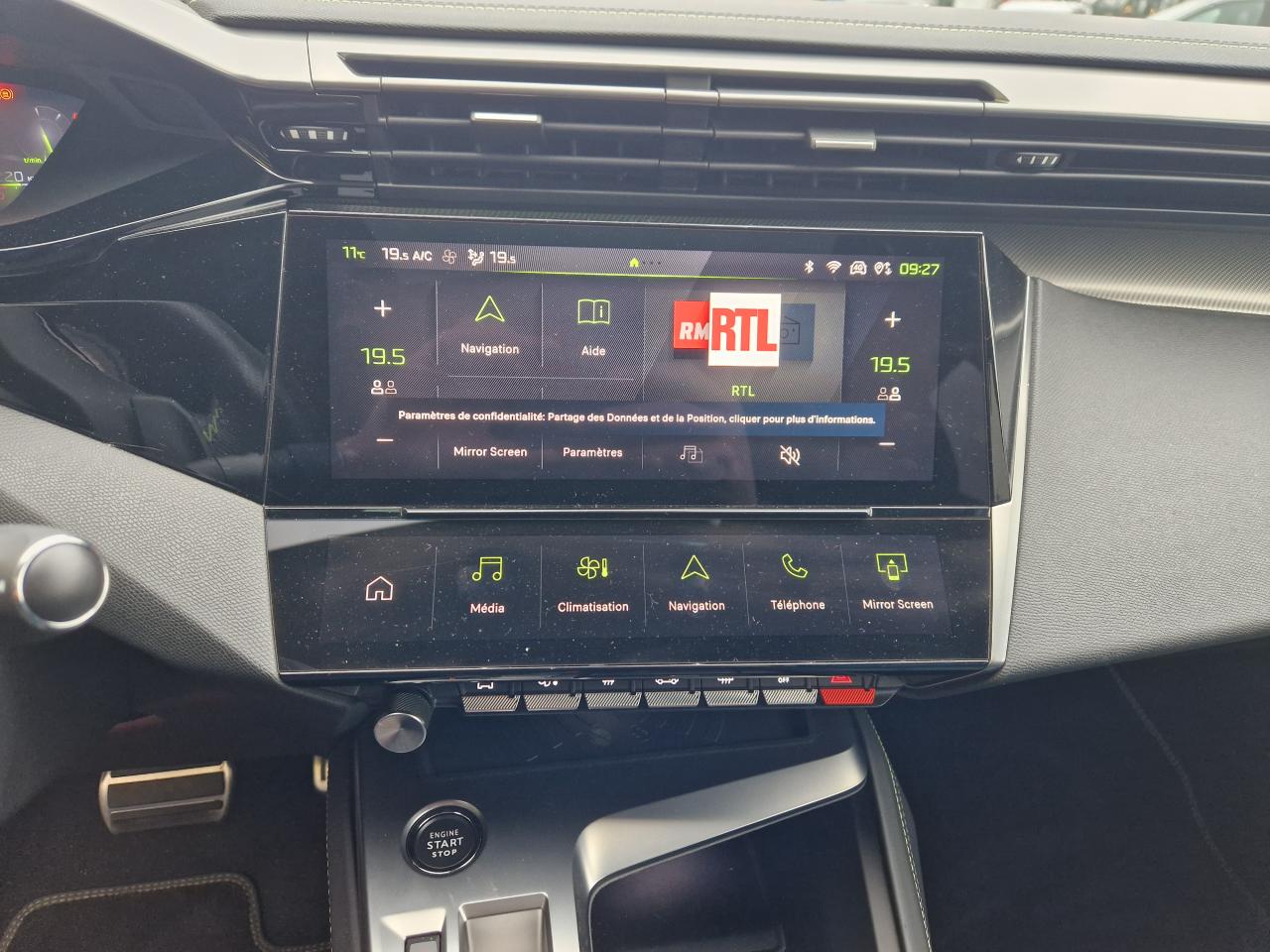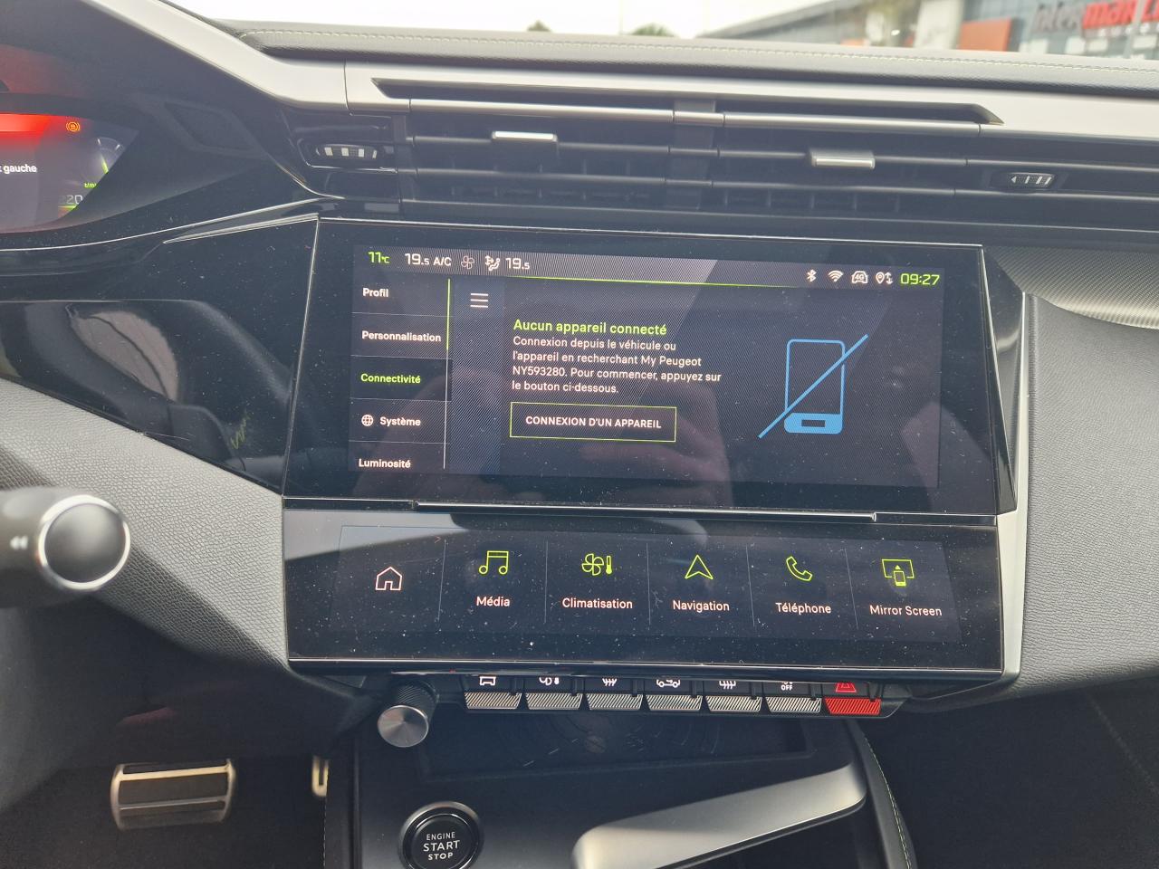 2 ports USB-C à l'avant et à l'arrière2 télécommandes 3 boutons4 poignées de maintienAccès et démarrage mains-libresAccoudoir central avant avec espace de rangement et porte-gobeletsAide au stationnement arrièreAide au stationnement avantAir Quality System (sonde de pollution, couplée à un filtre à charbon actif Haute Efficacité)Airbags frontaux conducteur et passager adaptatifs (passager neutralisable), latéraux avant et rideaux avant et arrièreBanquette arrière rabattable 1/3-2/3Boitiers de rétroviseurs extérieurs noir brillantCalandre avec grille verticale couleur caisseCiel de pavillon Noir MistralClean Cabin avec capteur de particules dans l'habitacleClimatisation automatique bi-zoneCommutation automatique des feux de route et essuie vitre avant à déclenchement automatiqueConsole centrale avec double surpiqûre et arche de console chroméeDétection de sous-gonflage des pneumatiquesDirection assistée électriqueDriver Sport Pack : personnalisation du combiné spécifique, sonorité du moteur amplifiée et plus sportive ( désactivable)Eclairage d'approche dans rétroviseurs extérieursEclairage d’ambiance 8 couleursESP (contrôle dynamique de stabilité ) + aide au démarrage en penteFeux arrière spécifiques avec allumage dynamique griffe à griffeFeux diurnes à LED sous projecteursFixations Isofix (aux places latérales arrière)Fonction BluetoothFonction Miror Screen sans filFrein de parking électriqueFreinage d'urgence automatique piloté par caméra et radarHayon mains libres (motorisé, s'ouvre et se ferme d'un mouvement du pied)Jantes alliage 19" diamantées GraphiteKit de dépannage pneumatiqueLécheurs de vitres noir brillantLève-vitres électriques arrière à fonctions séquentielle et anti-pincementLève-vitres électriques avant à commande séquentielle et anti-pincementModes de conduite Eco / SportMonogrammes latéraux emblème LionMontants de baie textile Noir MistralNavigation connectée avec écran central tactile 10'' et écran avec i Toggles virtuels personnalisablesPédaliers Sport et repose-pied en AluminiumPack Drive Assist PlusPack Rear Traffic DétectionPack SafetyPanneaux de porte avec surpiqûre Vert Adamite et décors aluminiumPare brise teinté acoustiquePare-brise en verre feuilletéPeinture métallisée Bleu ObsessionPeugeot Connect SOS & AssistancePeugeot I-cokpit avec instrumentation numérique 10" 3D personnalisablePlanche de bord avec jonc transversal chromé, décor Alu et surpiqûres VertPrise 12V à l'avantProjecteurs Matrix LEDRéglage lombaire conducteurRétroviseur intérieur électrochrome sans contourRétroviseurs extérieurs électriques avec clignotants à LED intégrés, dégivrants et rabattables électriquementRadio Numérique DABReconnaissance étendue des panneaux de circulationReconnaissance vocale en langage naturelSellerie Tri-matière maille Fraxx Knit/TEP/AlcantaraSeuils de portes avant en aluminiumSièges conducteur et passager réglables en hauteurSièges dynamiques avec appuis-tête avant deux voiesSurtapis aux places avant et arrièreSystème audio à 6 haut-parleursVisio Park 1 (caméra de recul)Vitres latérales arrière et lunette arrière chauffante temporisée surteintéesVitres latérales feuilletées acoustiques à l'avantVolant à réglage manuel en hauteur et en profondeurVolant chauffantVolant chauffant cuir perforé