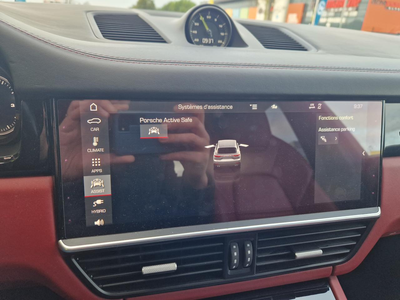 2 ports USB de chargement dans la console centrale arrière2 ports USB de chargement et de connexion dans le coffre de rangement de la console centrale avant2 prises d'alimentation 12 V (console centrale et boite à gants)2 sorties d’échappement simples Acier brossé, sur les côtés droit et gauche4 portes avec protection anti-encastrement latérale intégrée5 siègesABS (Antiblocage de roues)Accoudoir central rabattable avec 2 porte-gobelets, réglage longitudinalAirbag genoux côté conducteur et passagerAirbags grand volume pour le conducteur et le passagerAirbags latéraux avant (siège avant)Airbags rideauxAppuie-tête 2 positions (sauf sur siège central arrière).Appuies-têtes avant réglables 4 directionsAssistance à la descente (Porsche Hill Control, PHC)Assistance parking avant et arrière avec signal visuel et sonoreAssistant d’éclairage automatique avec éclairage d’accompagnementAvertisseur de freinage d'urgenceBac de rangement dans la console centraleBaguettes de seuil de porte en Acier spécial avec monogramme du modèle à l’avant : « Cayenne»Banquette arrière composée de 2 sièges latéraux confortables et d’un siège centralBanquette arrière Confort ou Sport avec sièges rabattables séparément (40 / 20 / 40)Becquet arrière avec troisième feu de stop à LEDBecquet sur le hayonBloc moteur en aluminiumBlocs optiques avant avec feux de position et clignotants à conducteurs de lumière à technologie LEDBoîte de vitesse Tiptronic S 8 rapportsBouclier avant avec prises d’air de refroidissement intégréesCapot avant actifCapteur de pluieCapteur de retournementCarrosserie de conception allégée hybride entièrement galvanisée alliant Acier et AluminiumCeintures de sécurité automatiques à 3 points avec prétensionneurs pyrotechniques à l'avant et à l'arrière, et limiteur d'effort à l'avantChâssis avec suspension à ressort hélicoïdauxClimatisation automatique avec réglage individuel de la température pour le conducteur et le passager, commande automatique du recyclage de l’air avec capteur de qualité de l’air et réglage individuel du débit d’air côtés conducteur eClimatisation autonomeCombiné d’instruments avec 2 écrans haute résolutionCompte-tours analogique central avec fond de compteur Noir, powermètre et aiguille en Vert AcideConcept d’éclairage de l’habitacle à LED : temporisation d’arrêt, éclairage bas d’habitacle avant et arrière, éclairage du cendrier, de la boîte à gants, du démarreurConnect Plus incluant module de navigation en ligne, module de communication LTE intégrant un lecteur de carte SIM, Wi-Fi et Car Remote incluant de nombreux services Porsche ConnectContrôle de pression des pneus ( TPMS )Couvre-bagages souple enroulableCrochet porte-vêtement sur les montants latéraux (gauche/droite)Culasse en aluminiumDéflecteurs (Airblades) avec entrées d’air latéralesDégivrage de lunette arrière avec arrêt automatiqueDémarrage sans cléDétecteur d'humiditéDeux turbocompresseursDiamètre des disques de frein de 390 mm à l’avant et 330 mm à l’arrièreDirection assistéeDisques de freins avant et arrière ventilésDoubles porte-gobelets avant et arrièreEclairage d'alentourÉlectronique de puissance, batterie lithium-ion d’une capacité énergétique de 14 kWh et accessoires moteur électriques (compresseur de climatisation et servofrein électrique)Entourage des vitres latérales couleur ArgentEssieu arrière multibras en aluminiumEssieu avant multibras AluminiumEssuie-glace arrière avec réglage de l'intermittence et buse de lave-glaceEssuie-glace avant à 2 vitesses avec balayage intermittentEtriers de frein couleur Vert AcideEtriers de frein monobloc en aluminium à 4 pistons à l'avant et 2 pistons à l'arrièreEtriers de frein monobloc en aluminium à 6 pistons à l'avant et 4 pistons à l'arrièreFeux arrière à LED avec graphisme tridimensionnel, avec feux stop intégrés 4 points et bandeau lumineuxFeux de jours à DEL 4 pointsFilets de rangement au dos des sièges AVFiltres à particules et à pollen avec filtre à charbon actifFonction Auto-HoldFrein de parking électriqueFrein multi-collisionHayon automatiqueInjection directe d’essence (Direct Fuel Injection, DFI) avec position centrale des injecteursInserts des lamelles des entrées d’air en ArgentIntérieur cuir partielIntérieur partiel Cuir dans les teintes de série, sièges Cuir partiel estampéJantes Cayenne 19 poucesKit de réparation avec compresseur électriqueLarge soubassement caréné aérodynamiqueLimiteur de vitesseMiroirs de courtoisie éclairés conducteur et passagerMonogramme arrière en Argent finition brillanteMonogramme avec bordure Vert AcidePack intérieur noir, finition brillantePack Sport Chrono avec Pack Off-Road et boussoleParamètres de personnalisation du conducteurPare-chocs constitué de traverses haute résistance et de 2 éléments de déformation, comportant chacun 2 logements taraudésPatins de pédale en Acier spécialPhares à LEDPochettes porte-cartes au dos des siègesPoignées de portes couleur carrosseriePorsche Active Suspension Management (PASM)Porsche Communication Management (PCM) avec écran tactile de 12 pouces Full-HD, module de navigation en ligne, pré-équipement pour téléphone portable, interfaces audio universelles et commande vocalePorte-bouteilles dans les contre-portes avant et arrièrePré-équipement attelagePrise 12V intégrée au panneau latéral du coffreProtection anti-encastrement latérale dans les portièresRangement sous les sièges avantRefroidissement de l'air de suralimentationRefroidissement par eau avec module de gestion thermiqueRégulateur de châssis intégré PorscheRégulateur de vitesseRenvois de ceinture des sièges conducteur et passager avant réglables manuellement en hauteurRétroviseur intérieur jour/nuit manuelRétroviseurs extérieurs électriques dégivrants et rabattables électriquement, asphérique côté conducteurSi