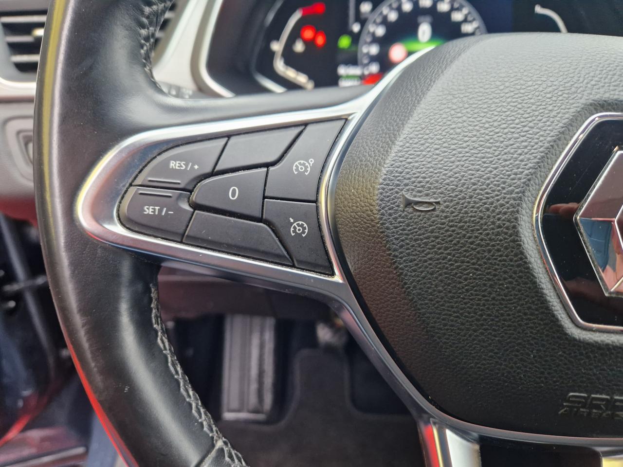ABS avec aide au freinage d'urgenceAccoudoir / console centrale avec rangementAccoudoirs de porte gainés en matériau moussé noir pailletéAide au démarrage en côteAide au stationnement arrièreAirbags frontaux et latéraux (tête thorax),conducteur et passagerAlerte de sortie de voie avec volant haptiqueAlerte de survitesse avec reconnaissance des panneaux de signalisationAlerte distance de sécuritéAlerte oubli des ceintures de sécurité aux 5 places avec détection des occupantsAllumage automatique des projecteursAntenne courteAppel d'Urgence Renault: appel automatique en cas d'accident ou bouton SOS pour appel (112) en cas d'urgenceApplication finition chrome sur le volantAssistance au maintien de voieAumônières au dos des sièges avantBaguettes chromées sur le pare-choc arrièreBandeau de planche de bord gainé TEPBandeau supérieur de décor façon aluminium brosséBanquette arrière coulissante, rabattable 1/3-2/3 avec 3 appuis-têtes réglables en hauteurBouton de démarrage Start/Stop avec contour chroméCanule d'échappement chroméeCapteur de pluieCarte Renault mains-libresCeinture centrale arrière 3 points, avec prétensionneur et limiteur d’effortCeintures de sécurité conducteur et passager avant réglables en hauteurCerclages chrome satiné autour du pommeau de levier de vitesseCiel de pavillon tissé gris clairClimatisation automatiqueCoiffe supérieure de planche de bord mousséeCondamnation électrique centralisée des portes avec télécommande et condamnation des portes en roulantCondamnation automatique des ouvrants en roulantCoques de rétroviseurs noiresDéflecteur en chromeDésactivation manuelle de l'airbag passagerEASY LINK 7” et navigationEclairage avant et arrière Full LED Pure Vision avec signature lumineuse en forme de « C »Eclairage intelligent (commutation automatique feux de croisement/feux de route)Entourage aérateurs en chromeESC (contrôle électronique de la trajectoire)Feux de stop à LEDFrein de parking électrique avec fonction Auto-HoldFreinage actif d’urgence, avec détection des voitures, motos, piétons, cyclistes (jour et nuit)Indicateur de changement de vitessesInsert chromé sur les protections inférieures de portesInserts d'ailes avant chromésJantes alliage 18” Pasadena diamantées gris erbéJonc de calandre noir brillant avec inserts chromésKit gonflage de réparationLêcheur de vitre chromé avec effet pavillon flottantLève-vitre électriques à impulsionMode EcoMontants avant, milieu et arrière noirs brillantsPanneaux de porte avant avec bandeau supérieur et médaillon en matériau mousséPeinture bi-ton (toit, coques de rétroviseurs, montants de pare-brise)Plafonnier éclairage LEDPlancher de coffre modulable 2 positionsPoignées de portes couleur carrosseriePoignées de portes intérieures finition chrome satinéPommeau de levier de vitesses en cuirPrétensionneurs des ceintures et limiteur d efforts AV et AR latéralRégulateur et limiteur de vitesseRétroviseur intérieur électrochromeRétroviseurs extérieurs réglables, rabattables électriquement et dégivrantsReconnaissance des panneaux de signalisationRenault MULTI-SENSE, personnalisation des 3 modes de conduites (MY SENSE, ECO, SPORT) et des 8 ambiances lumineuses intérieuresSellerie TEP / tissu avec jonc grisSiège conducteur réglable en hauteurSiège passager réglable en hauteurSkis avant et arrière GrisSystème de détection de la pression des pneusSystème de fixation ISOFIX aux places latérales arrière et passager avantTableau de bord numérique 7” personnalisableTiroir Easy Life avec éclairageVitres latérales et lunette arrière surteintéesVolant cuirVolant réglable en hauteur et en profondeur