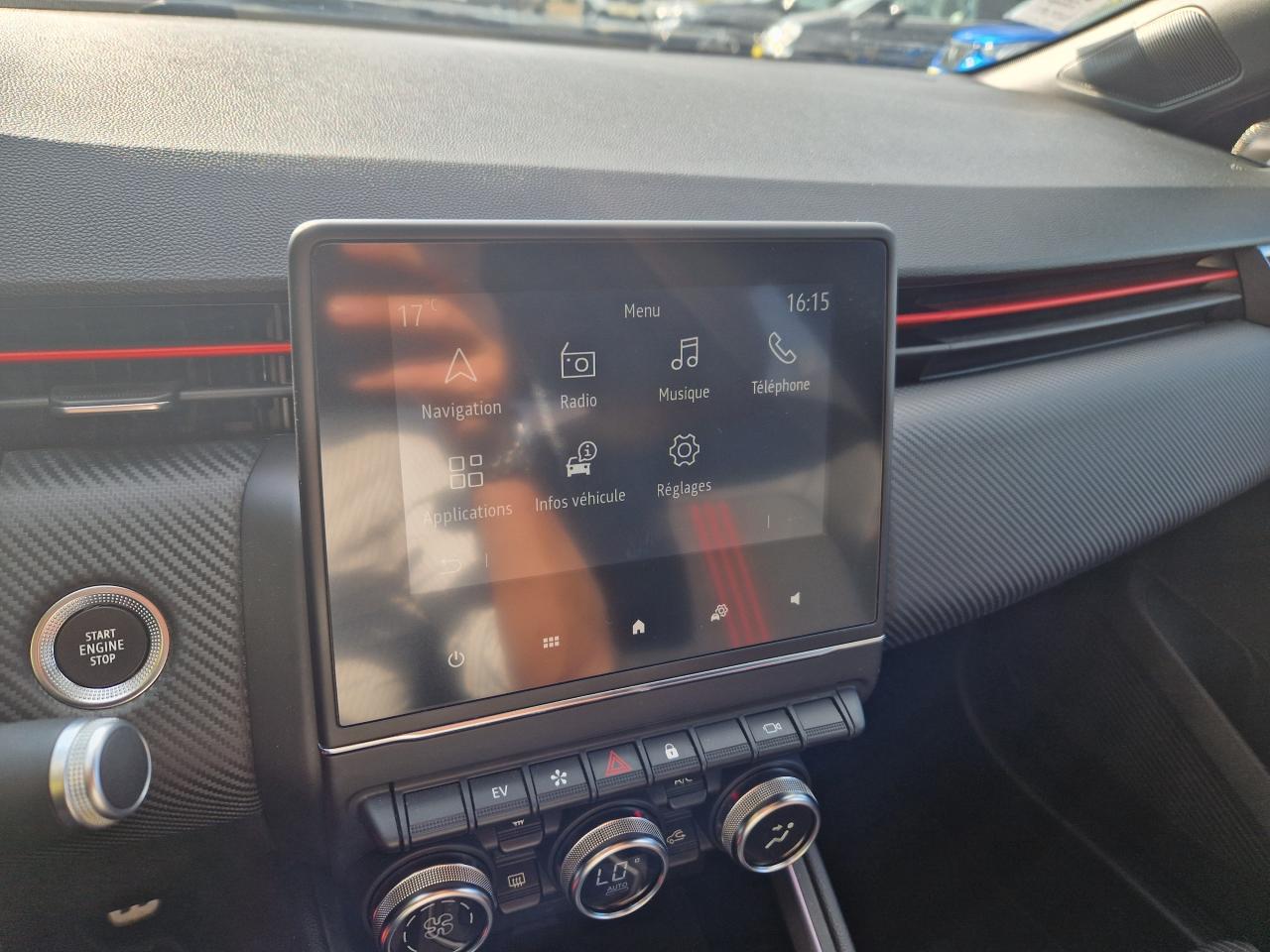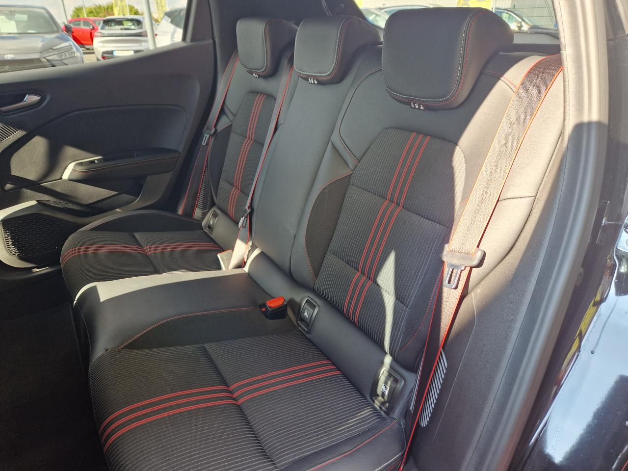 ABS avec aide au freinage d'urgenceAccoudoir avant, coulissant - avec rangement fermé de 2,2 lAérateurs latéraux chrome satinéAide au démarrage en côteAirbags frontaux et latéraux conducteur et passager avantAlerte de perte de pression des pneusAlerte de sortie de voie avec volant haptiqueAlerte de survitesse avec reconnaissance des panneaux de signalisationAlerte distance de sécuritéAlerte oubli des ceintures de sécurité aux 5 places avec détection des occupantsAllumage automatique des essuie-glacesAllumage automatique des projecteursAppel d'Urgence Renault: appel automatique en cas d'accident ou bouton SOS pour appel (112) en cas d'urgenceAppuis-têtes avant fin et 3 appuis-têtes arrière réglables en hauteurAssistance au maintien de voieBadges E-TECH HybridBandeau supérieur des portes avant en matériau mousséBanquette arrière rabattable 40/60Boîte à gants ferméeCarte Renault, accès et démarrage « mains-libres »Ceinture centrale arrière 3 points, avec prétensionneurCeintures de sécurité AV et latérales AR à prétensionneurs et limiteurs d'effortCeintures de sécurité avant réglables en hauteurClimatisation automatiqueCoiffe de planche de bord en noir, avec matériau mousséCommande « EV » sur tableau de bordConsole centrale avant flottante, avec gainage en matériau softContrôle électronique de stabilité (ESC)Désactivation manuelle de l'airbag passagerDesign extérieur R.S. LineDesign intérieur R.S. LineEASY LINK 7” et navigationEclairage avant et arrière Full LED Pure Vision avec signature lumineuse en forme de « C »Eclairage d’ambiance : lumière personnalisable sur console centrale et accoudoir des portes avantEclairage intelligent (commutation automatique feux de croisement/feux de route)Eclairage intérieur avant et arrière avec 4 liseuses LEDFeux de stop à LEDFrein de parking électrique avec fonction Auto-HoldFreinage actif d’urgence, avec détection des voitures, motos, piétons, cyclistes (jour et nuit)Indicateur de changement de vitessesInserts en chrome satiné sur le volant et l’embase de levier de vitesseJantes alliage 17” MAGNY-COURS diamantées noiresJoncs chromés sur bandeau supérieur de calandreJoncs chromés sur protections inférieures de porteKit de gonflageLécheur de vitres latérales chromeLève vitres électriques avant et arrière impulsionnelsMode EcoPack CityPare-soleil avec miroir de courtoisiePeinture Blanc GlacierPieds de portes et poignées arrière intégrée Noir BrillantPoignées de porte avant couleur carrosserieProjecteurs antibrouillard LED avec fonction corneringProtections inférieures de porte avec signature CLIORéception radio numérique (DAB+ et traditionnels FM/AM)Régulateur et limiteur de vitesseRenault MULTI-SENSE, personnalisation des modes de conduites et ambiance intérieures (3 mode pré-définis: MY SENSE, ECO, SPORT)Rétroviseur intérieur électrochromeRétroviseurs extérieurs couleur carrosserieSellerie mixte R.S. Line cuir synthétique noir et tissu rayé noir / rouge, surpiqûres rougesService Auto-Update - 3 ans inclusServices de navigation connectée - 3 ans inclusSièges avant réglables en hauteurSystème Isofix aux places latérales arrière et passager avantTableau de bord avec écran numérique et personnalisable 7”Véhicule connecté 4G avec pack de données inclus pendant 3 ansVitres arrière surteintéesVolant multifonctions réglable en hauteur et en profondeur