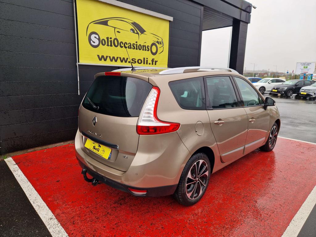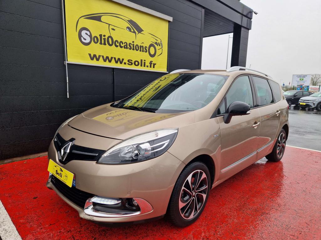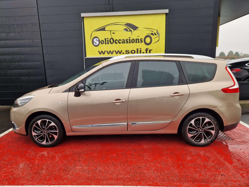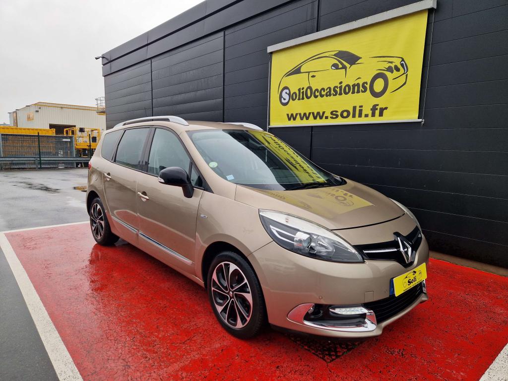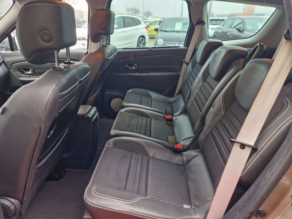2 sièges de 3è rang, escamotables3 appuie-tête arrière réglables en hauteur3 sièges de 2éme rangée, individuels, amovibles, avec dossier inclinable et rabattableAérateurs aux places arrièresABS avec aide au freinage d'urgenceAide au démarrage en côteAide au stationnement avant/arrièreAirbags frontaux conducteur et passager adaptatifs (airbag passager déconnectable)Airbags latéraux (thorax / bassin) avantAirbags rideaux de têtes aux places avant et arrièreAllumage automatique des feux de détresseAppuie-tête à l'avant, réglables en hauteurBadge extérieur BoseBarres de toit longitudinalesBose Sound System (CD MP3, Bluetooth, prises USB/Jack)Caméra de reculCarte Renault, accès et démarrage « mains-libres »Ceinture de sécurité Gris ArgentClignotant à impulsionClimatisation automatique bi-zoneCondamnation automatique des ouvrants en roulantContrôle électronique de trajectoire (ESC)Détecteur de pluie et allumage automatique des projecteursDirection à assistance variable électriqueEclaireurs de cave et sol avant et arrièreFeux de jour à LEDHarmonie Carbone FoncéJantes alliage 17" AKIHIRO Noires diamantéesJoncs Chrome sur protections latérales de caisse ton carrosserieKit de réparation de pneusLève vitres avant électriques à impulsionMiroirs de courtoisie éclairésOrdinateur de bordPack ConfortPack FamillePack R-Link EvolutionPrises 12 voltsProjecteurs antibrouillardRégulateur et limiteur de vitesseRétroviseur intérieur électrochromeRétroviseurs extérieurs électriques et dégivrantsRétroviseurs extérieurs couleur carrosserieRétroviseurs extérieurs rabattables électriquementRange-lunettes côté conducteurRangement central bas entre sièges avantSellerie TEP/tissu carbone foncéSeuils de portes aluminium avec logo "Bose"Siège central arrière avec mise en tabletteSiège conducteur à réglage en hauteurSiège conducteur à réglage lombaireSiège passager réglable en hauteurSystème de fixation ISOFIX 3 points pour siège enfant aux places arrièreSystème de surveillance de pression des pneusTableau de bord à écran couleur personnalisable à technologie TFTVitres latérales et lunette arrière surteintéesVolant et pommeau de levier de vitesses en cuirVolant réglable en hauteur et en profondeur
